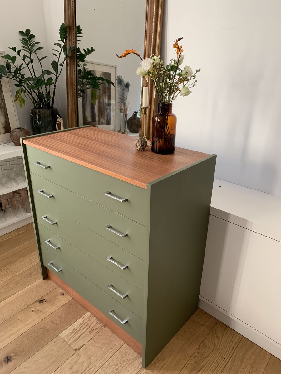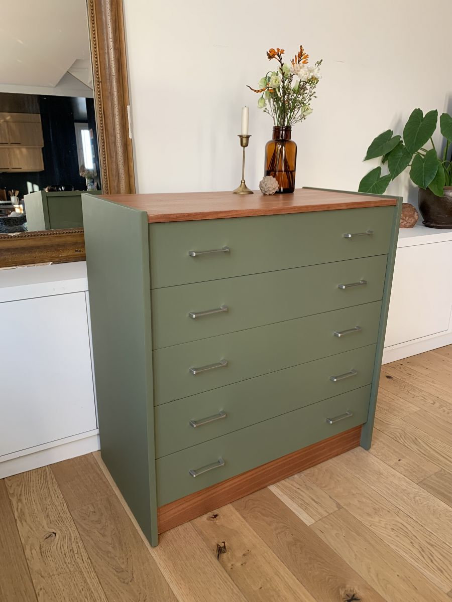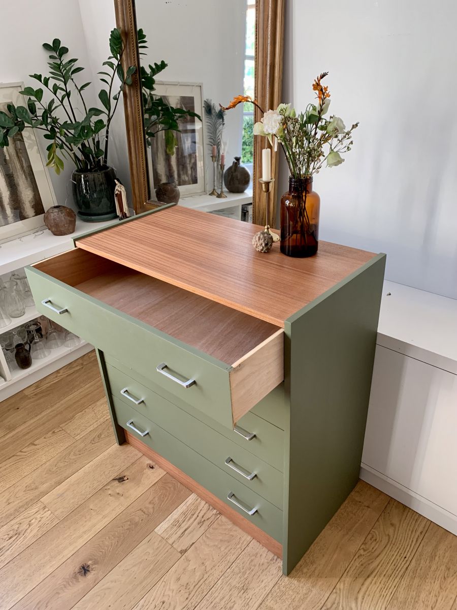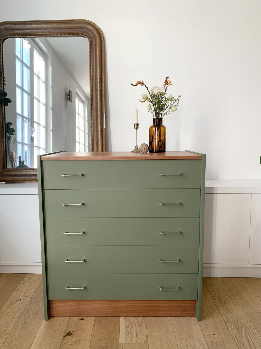 Elle a été mise en beauté avec la douce nuance "Olive" de chez Ressource.