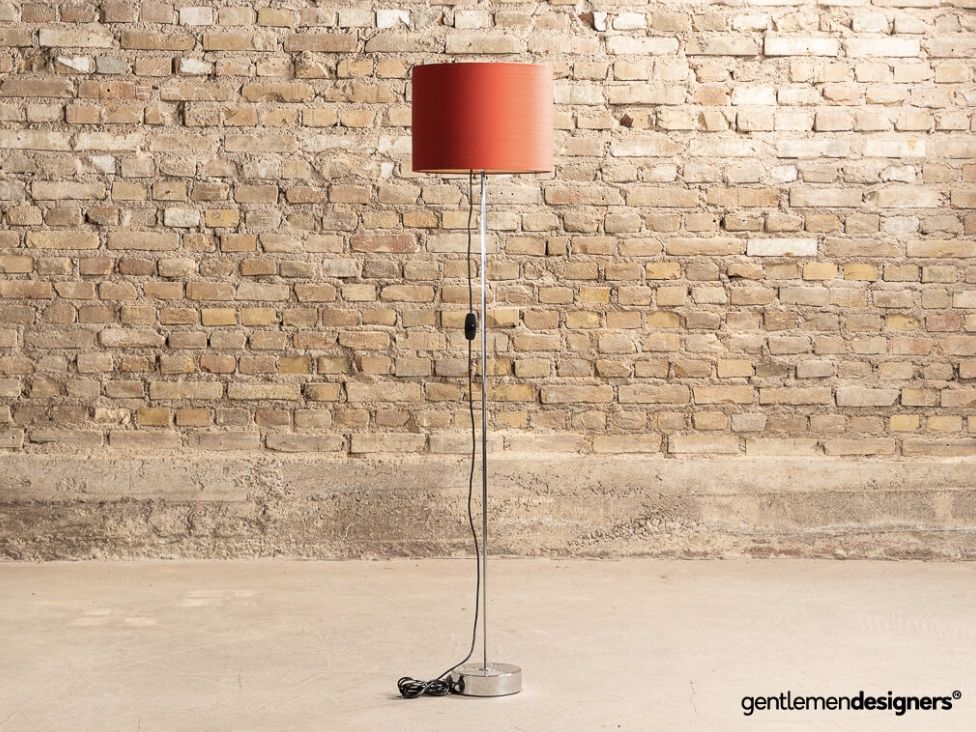 Magnifique lampadaire mid-century avec un abat-jour rouge. Il est totalement fonctionnel, mais montre des petits signes d’usure dû à son âge.