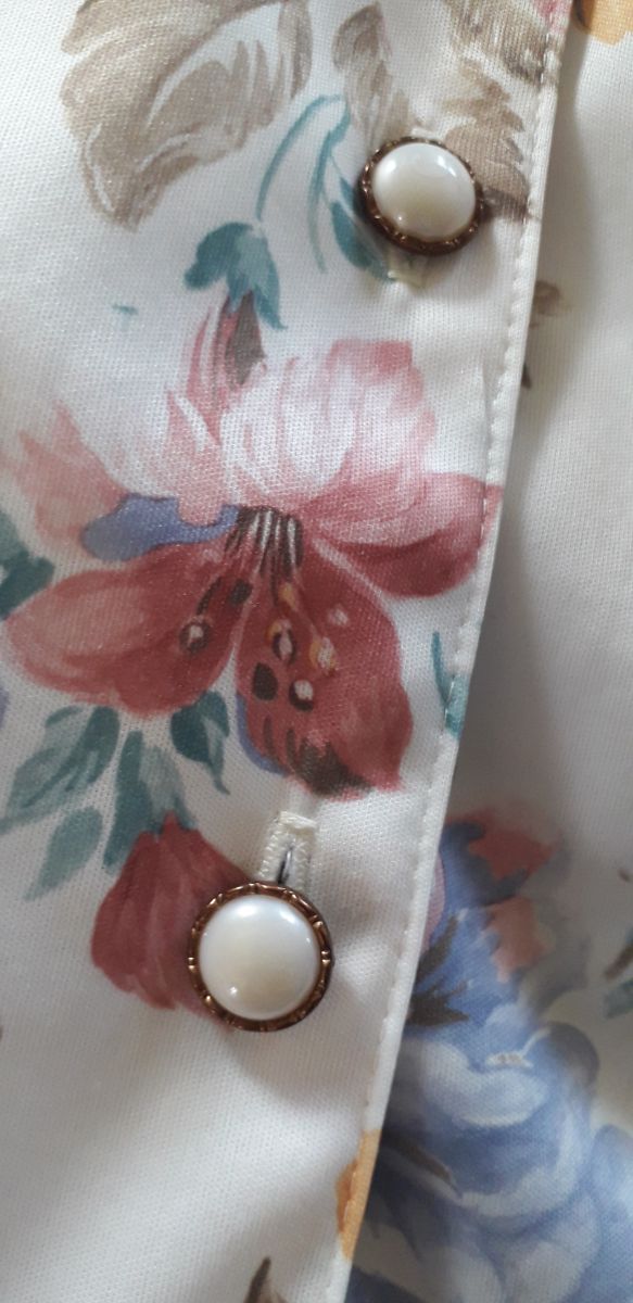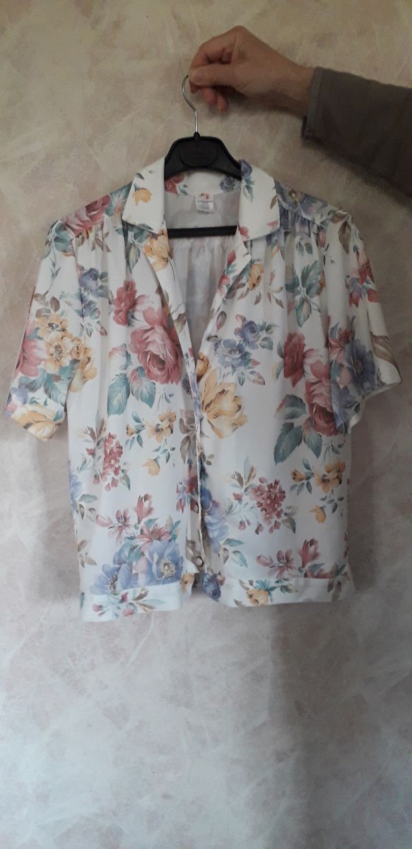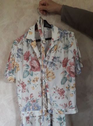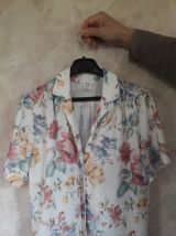 Ensemble à fleurs vintage, comprenant un chemisier, une jupe et une ceinture en tissu.