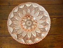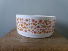 Plat de présentation à oeufs, en céramique blanche avec quelques touches de rose.