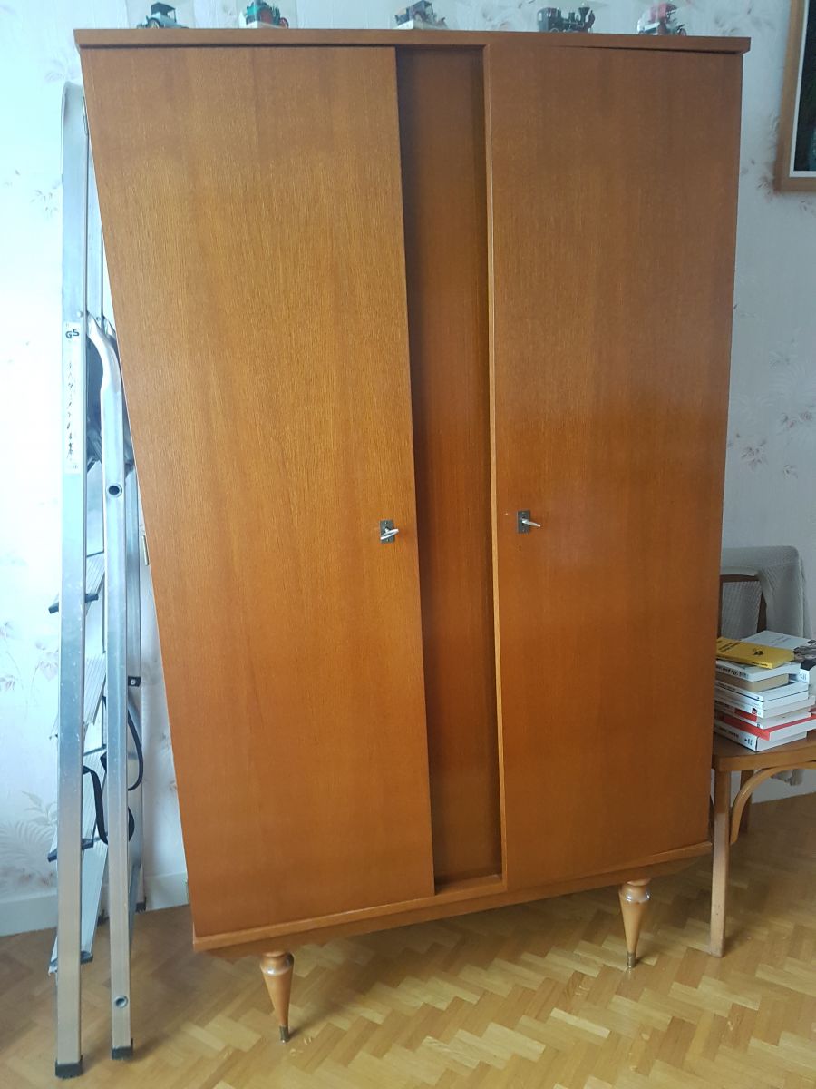 Armoire 2 portes style années 50, bois clair. Très bon état.