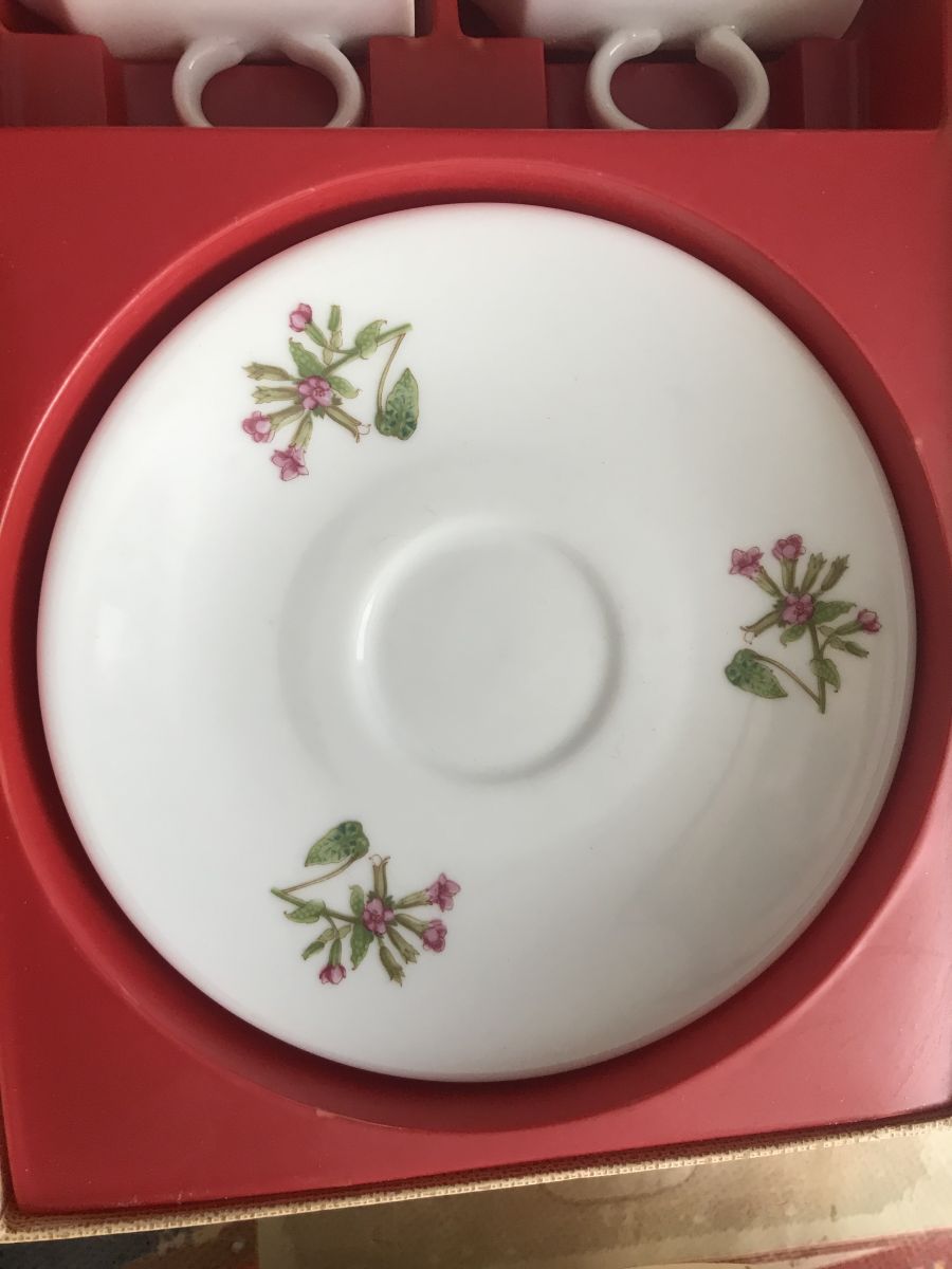 Service de tasses et sous tasses ancien bavarois neuf. Hélas une tasse avec un éclat