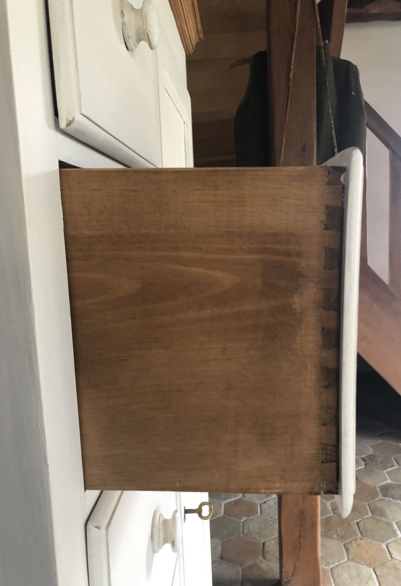 Très joli farinier légèrement patiné qui offre un beau volume de rangement.