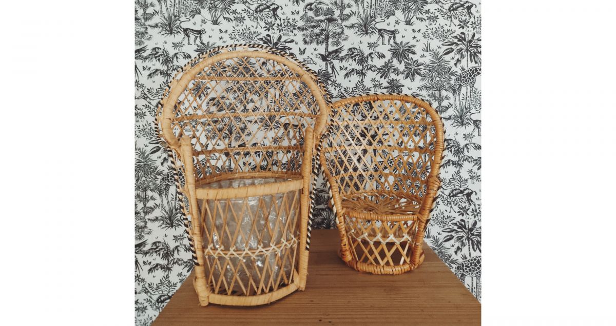 Deux petits fauteuils Emmanuelle en rotin pour plantes , poupée . . .