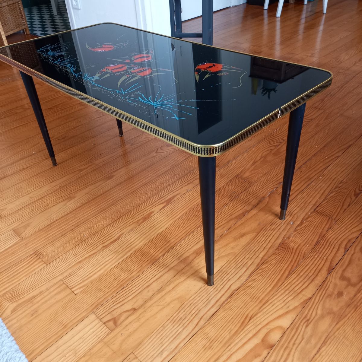 table basse années 50 vintage formica et verre