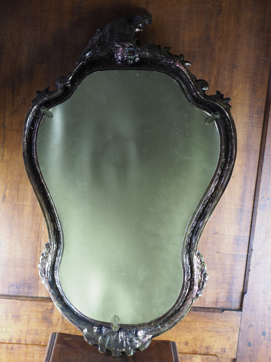 Grand miroir à coquille en résine dorée, ornements rocailles. Très belle qualité de sculpture et de résine.