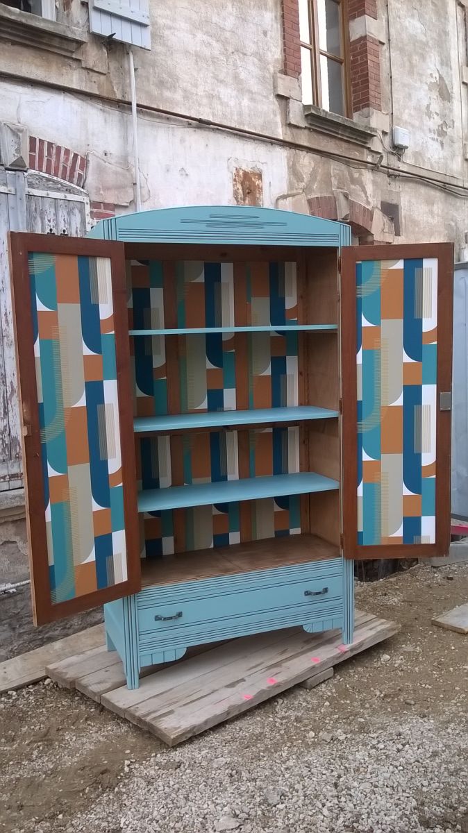 l intérieur et les portes intérieur on été tapissé d un papier design.