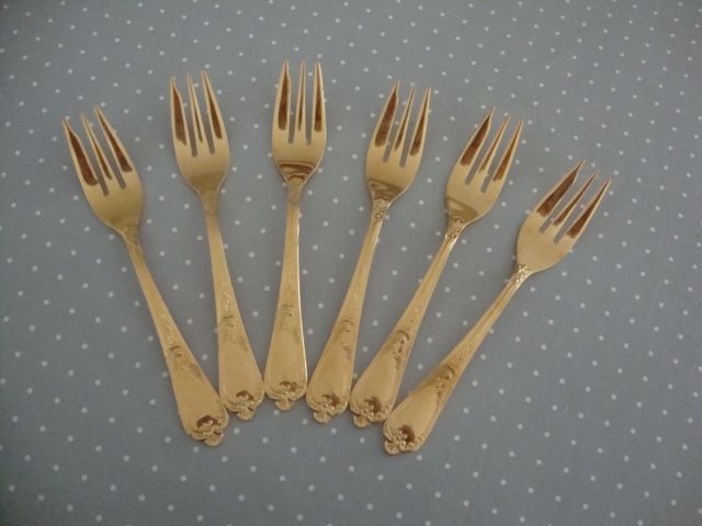 6 Fourchettes à dessert métal doré
