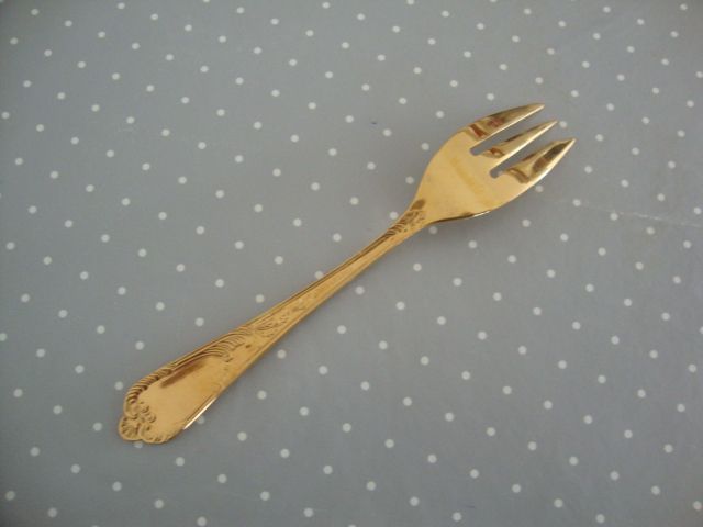 6 FOURCHETTES À GÂTEAUX EN MÉTAL DORÉ STYLE LOUIS XVI. MARQUE EDELSTAHL.