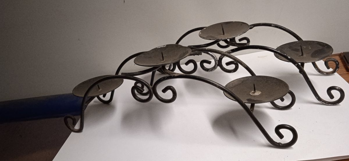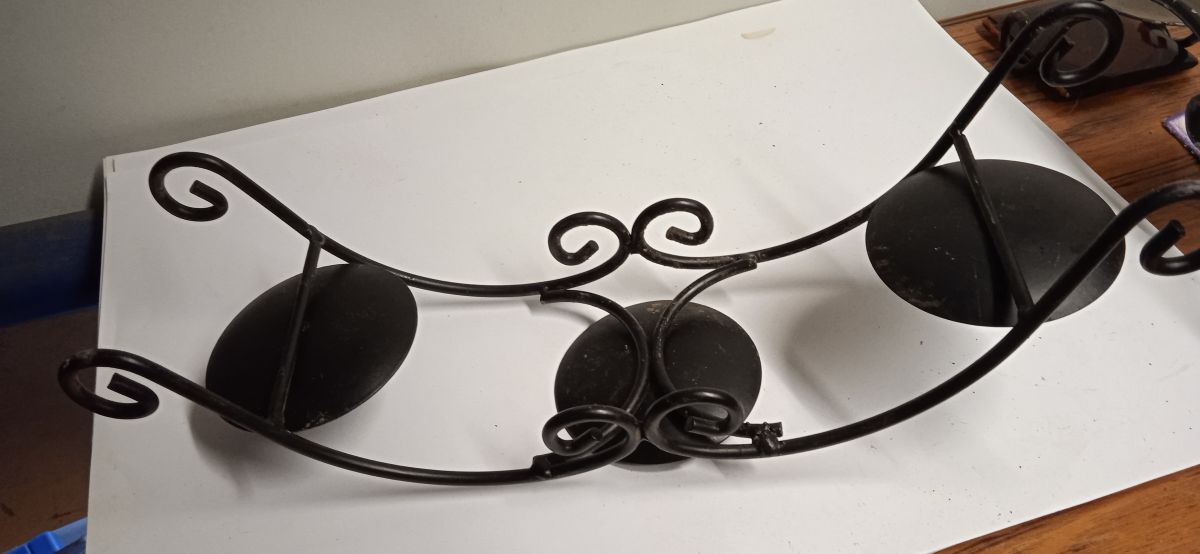 Pair of arch three (3) pronged candle holders
