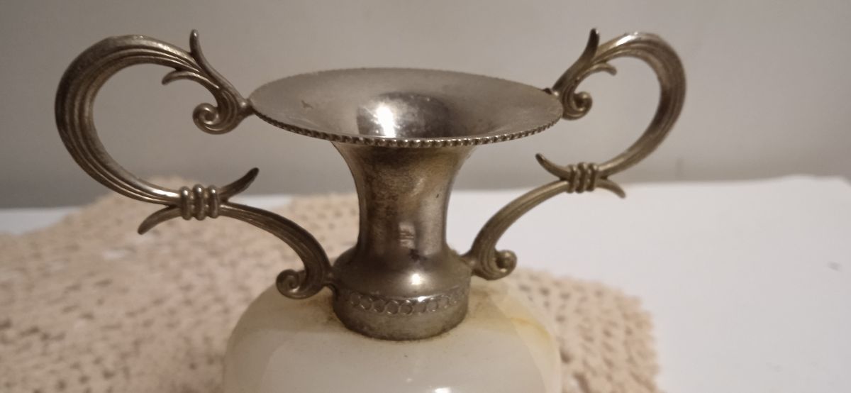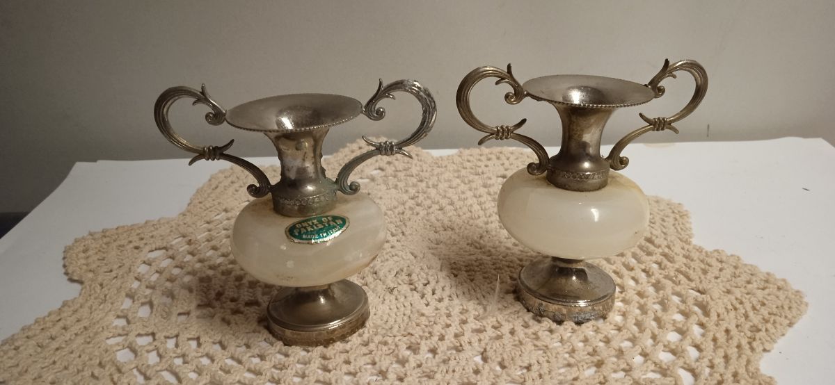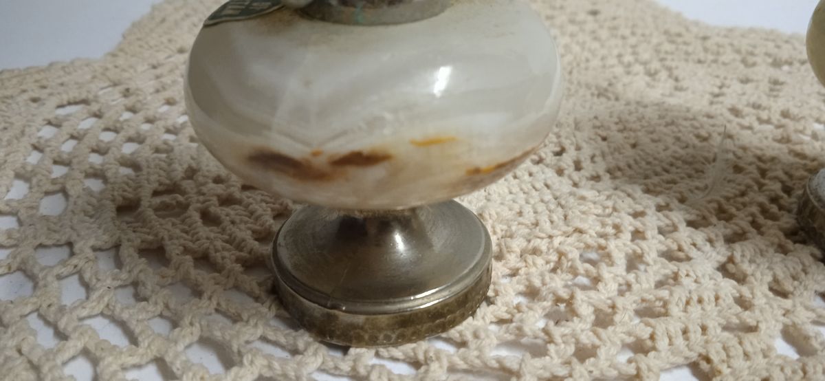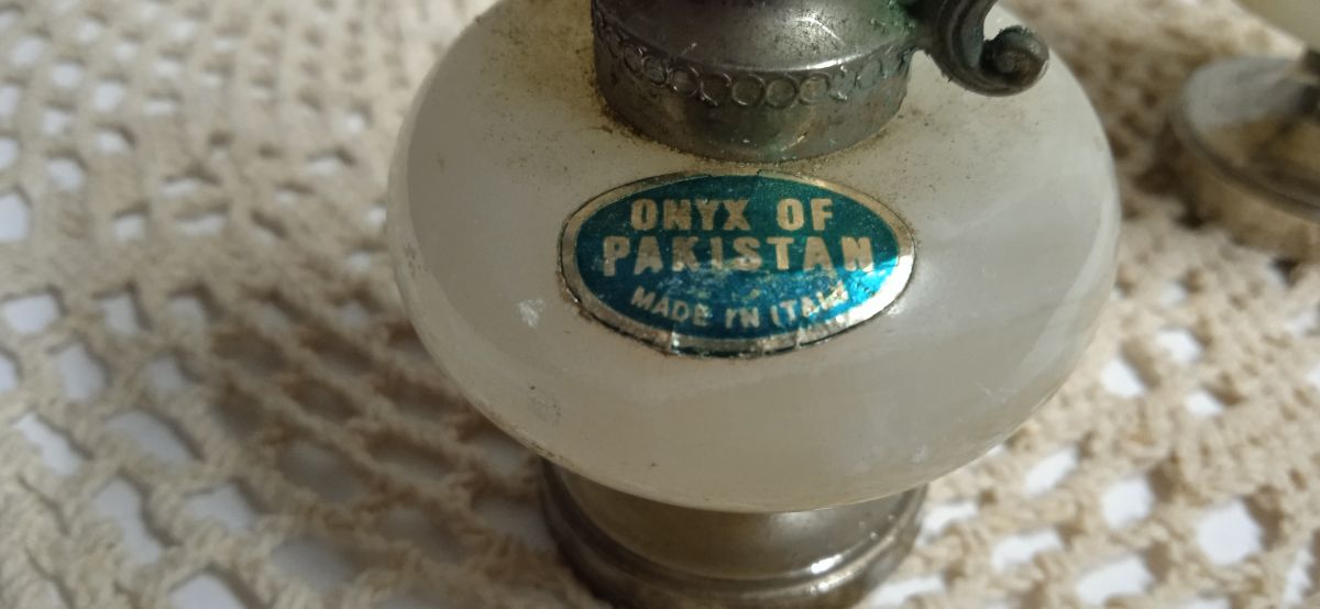 The onyx comes from Pakistan and was made into taper holders in Italy.