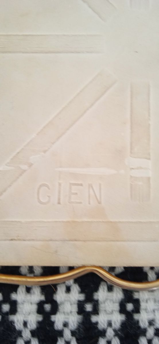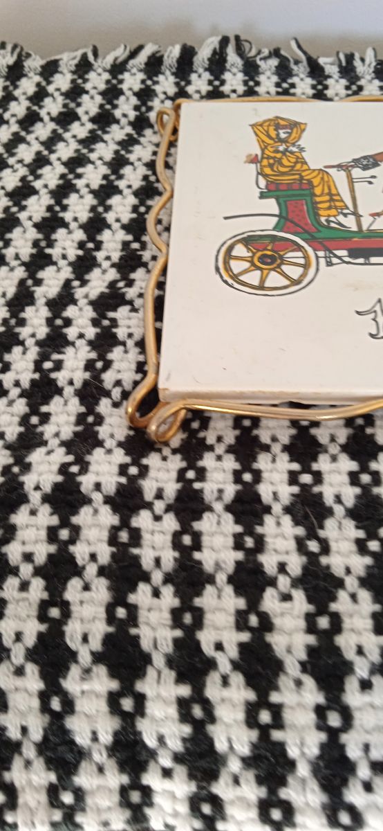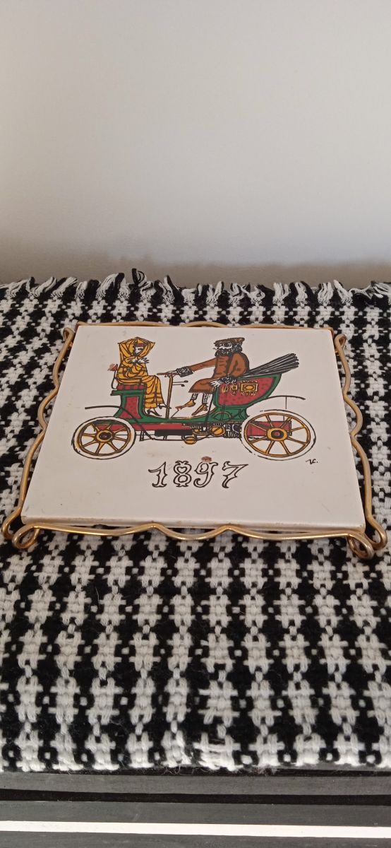 dessous de plat Gien .en céramique et laiton doré .en excellent état aucun manque ni feles ni usure apparente .des années 60/70 .magnfique sur une table .carreau Gien détachable de sa structure d'origine .envoie soigné .