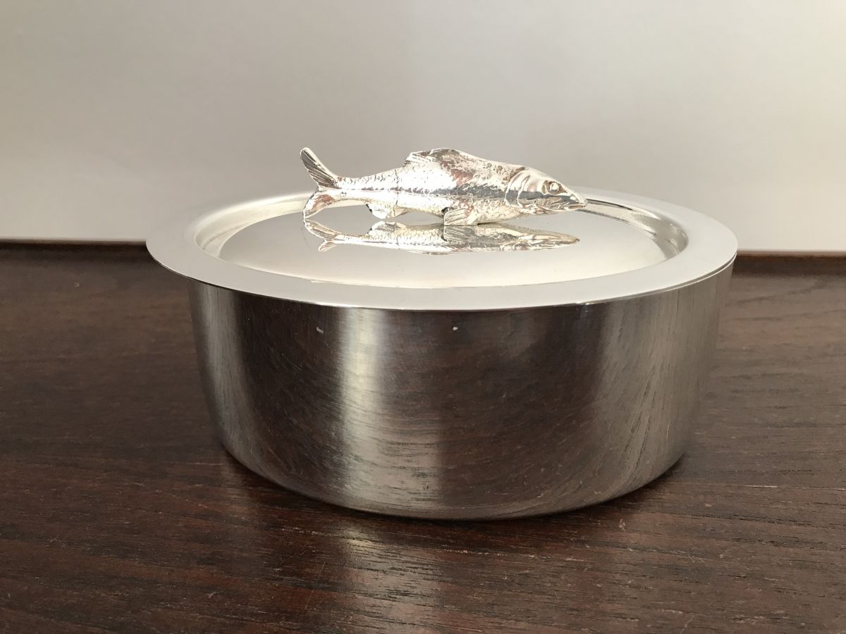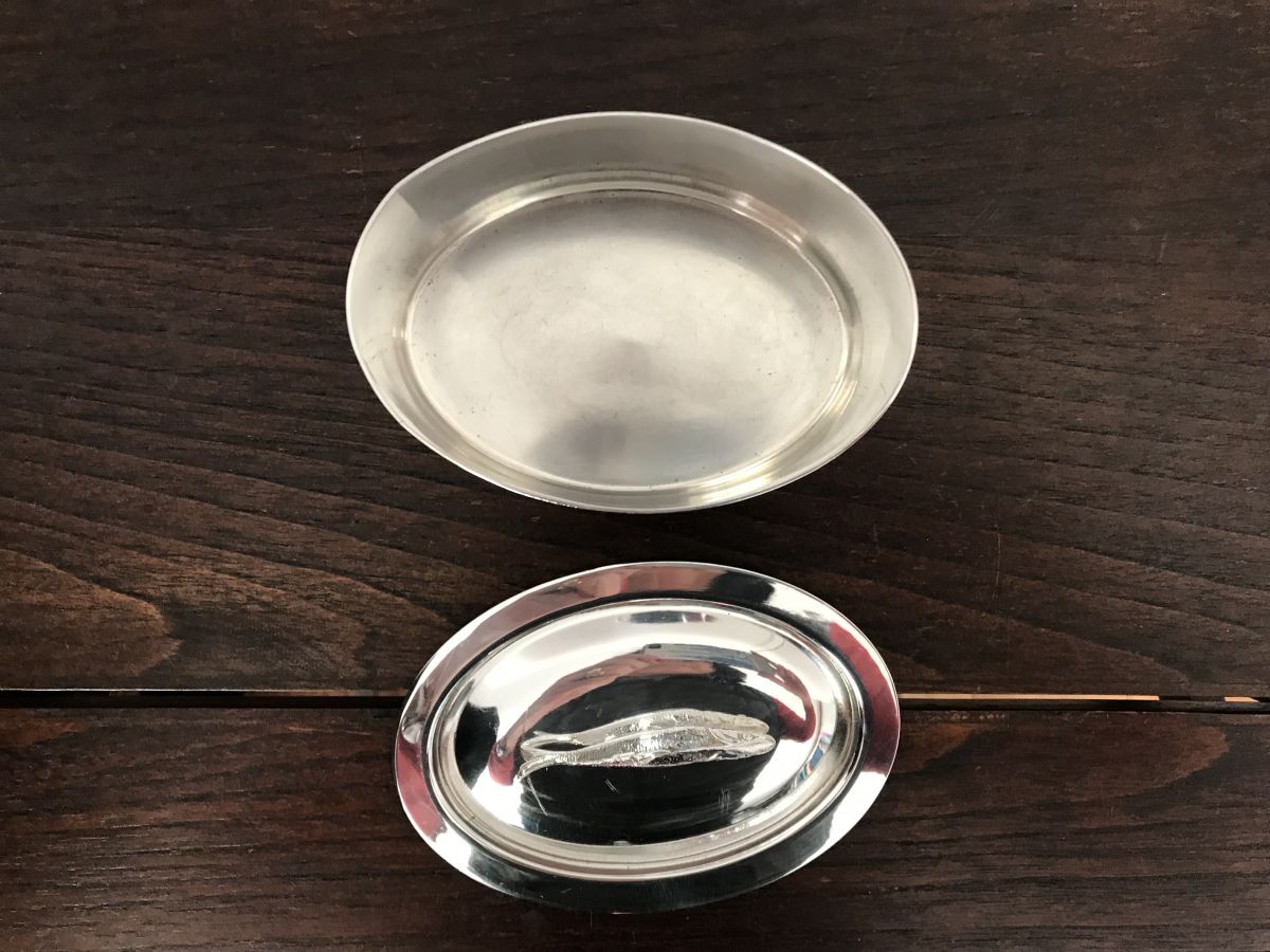 Mini Sardinière en métal argenté français.