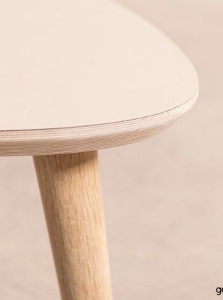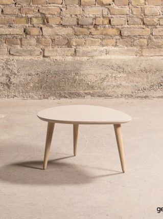 Table basse format goutte avec un plateau rose pâle (60x50cm