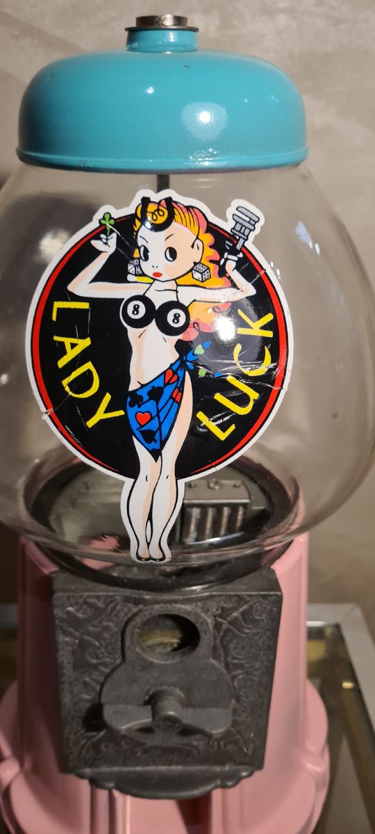 Distributeur a bonbon chewing gum, bonbonniere en fonte et verre ,non fonctionnel