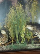 Diorama de deux cailles naturalisées dans un cadre ancien
