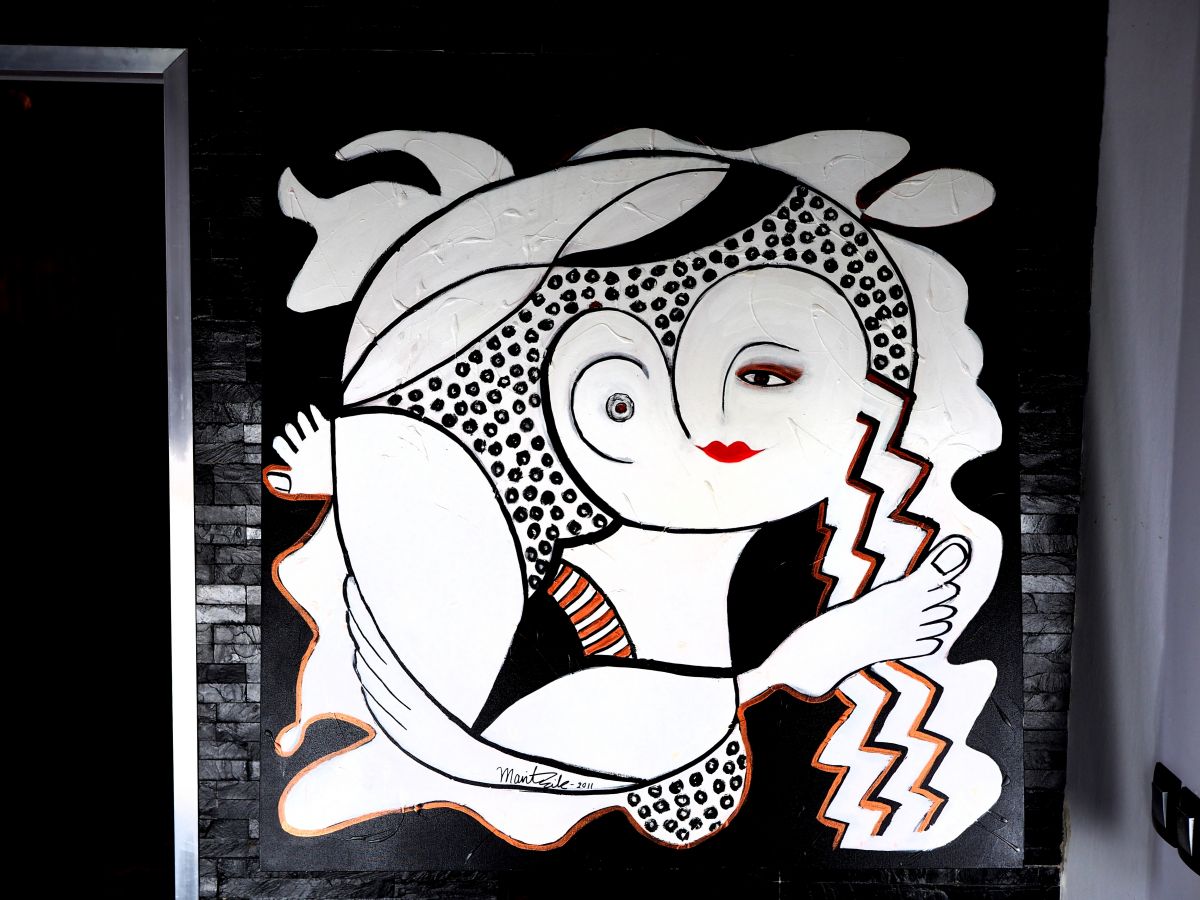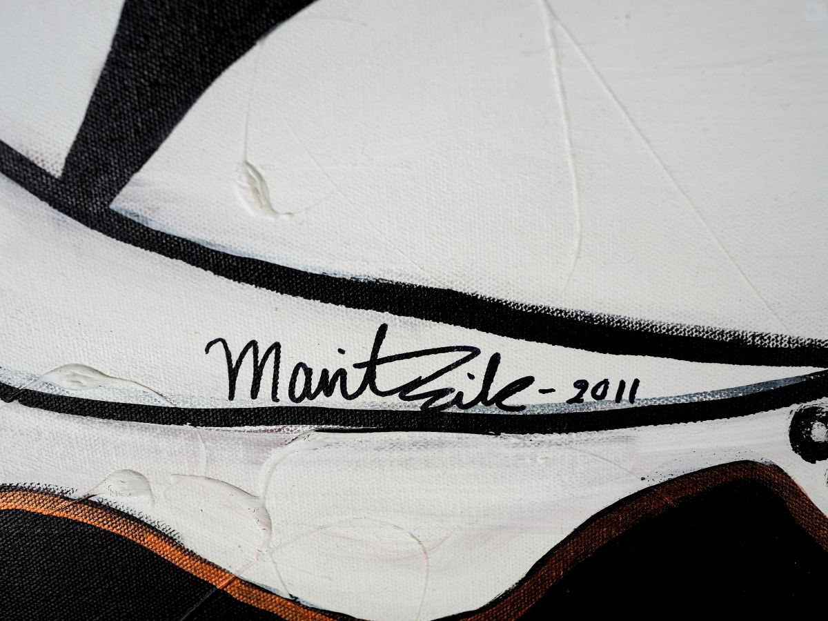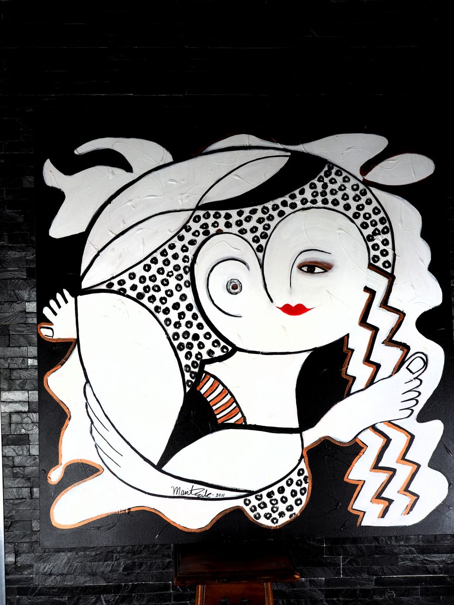 Grand tableau de Marit Eik "Sexual abstraction". Composition noire et blanche à évocation sensuelle. Acrylique et techniques mixtes.
