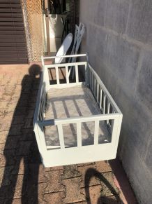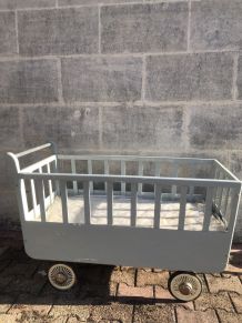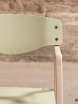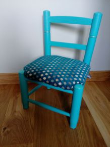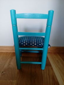 Chaise d'enfant vintage avec accoudoirs, restaurée et relookée dans des teintes pastel.