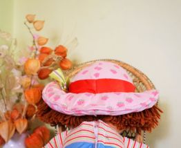 La Poupée Charlotte aux fraises Vintage est une grande poupée chiffon parlante tout en tissus rembourré de mousse elle possède deux points d'activation du langage situés sur la paume de chaque main.