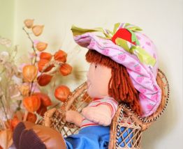 Cette poupée chiffon fait partie des produits dérivés issues du dessin animé Charlotte aux fraise diffusé depuis 1977 à la télévision d’abord aux Etats-Unis puis au Québec sous le nom de Fraisinette ainsi qu’en Europe dans les années qui suivirent. Aujourd’hui encore une série dessin animé Charlotte aux fraise nouvelle génération existe.