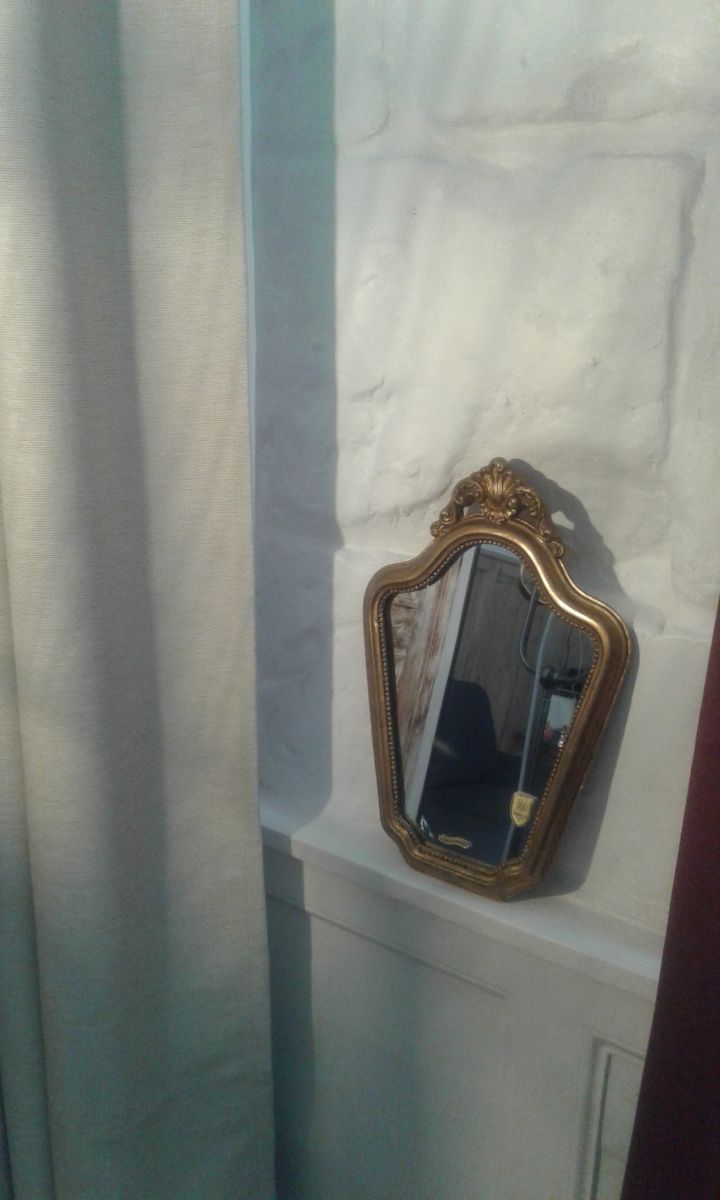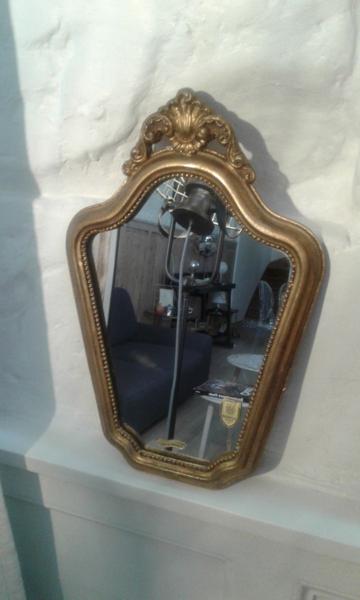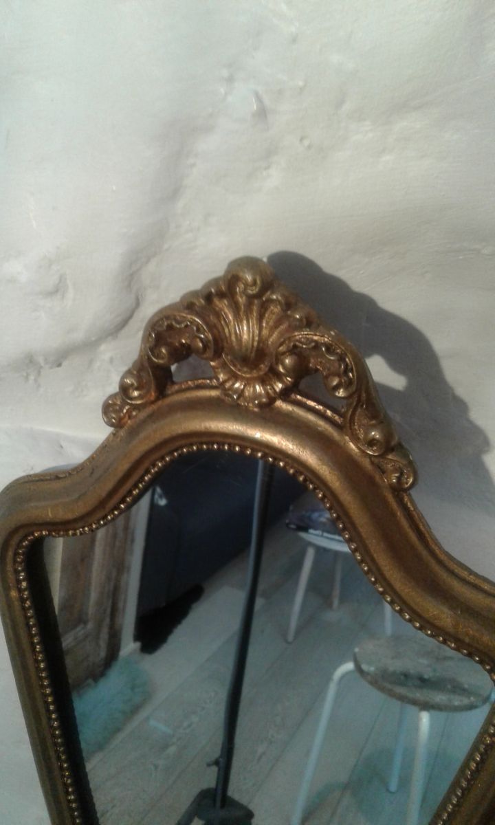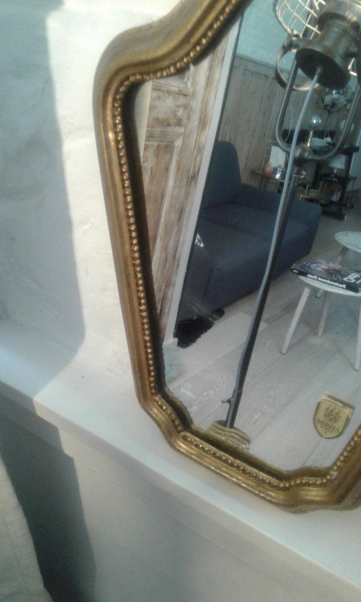 Miroir doré a la feuille d or très déco a noté quelques griffes voir photos elle ne se voit plus une fois le miroir accroché.