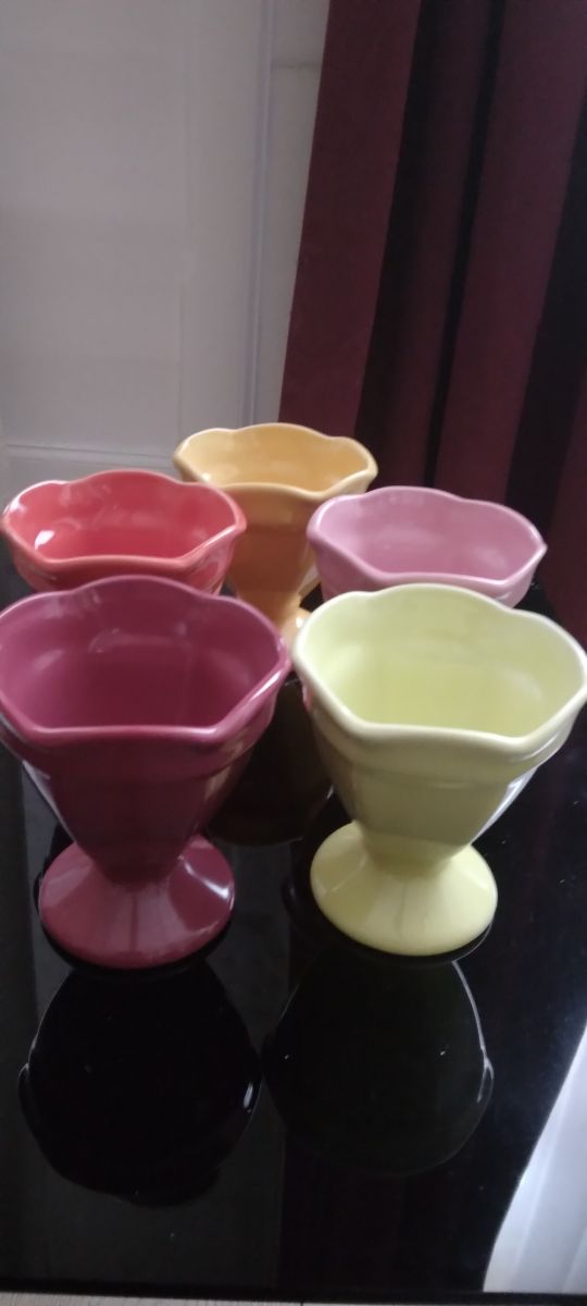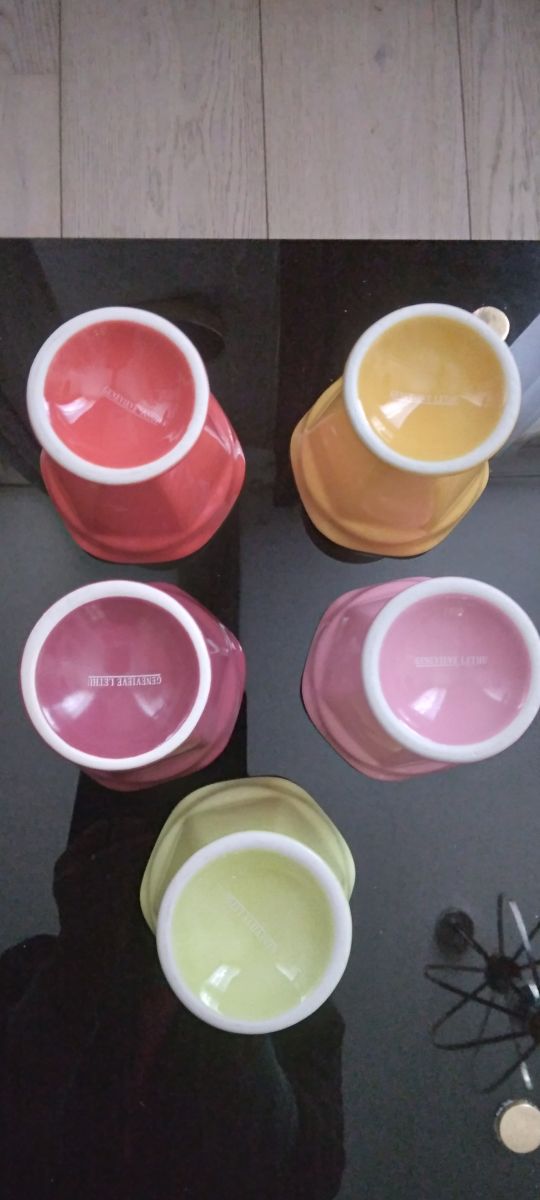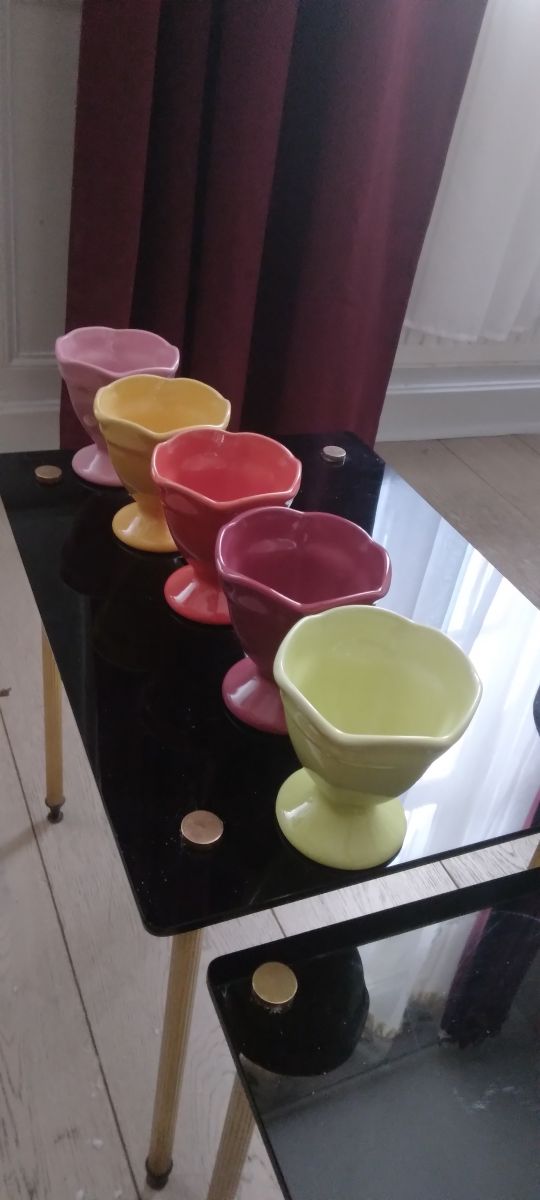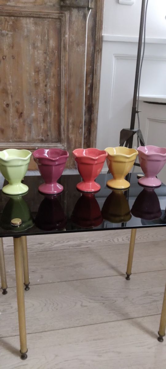 Ensemble de 5 coupes à dessert Geneviève Lethu.,la hauteur est de 10 cm et 18 cm de diamètre.