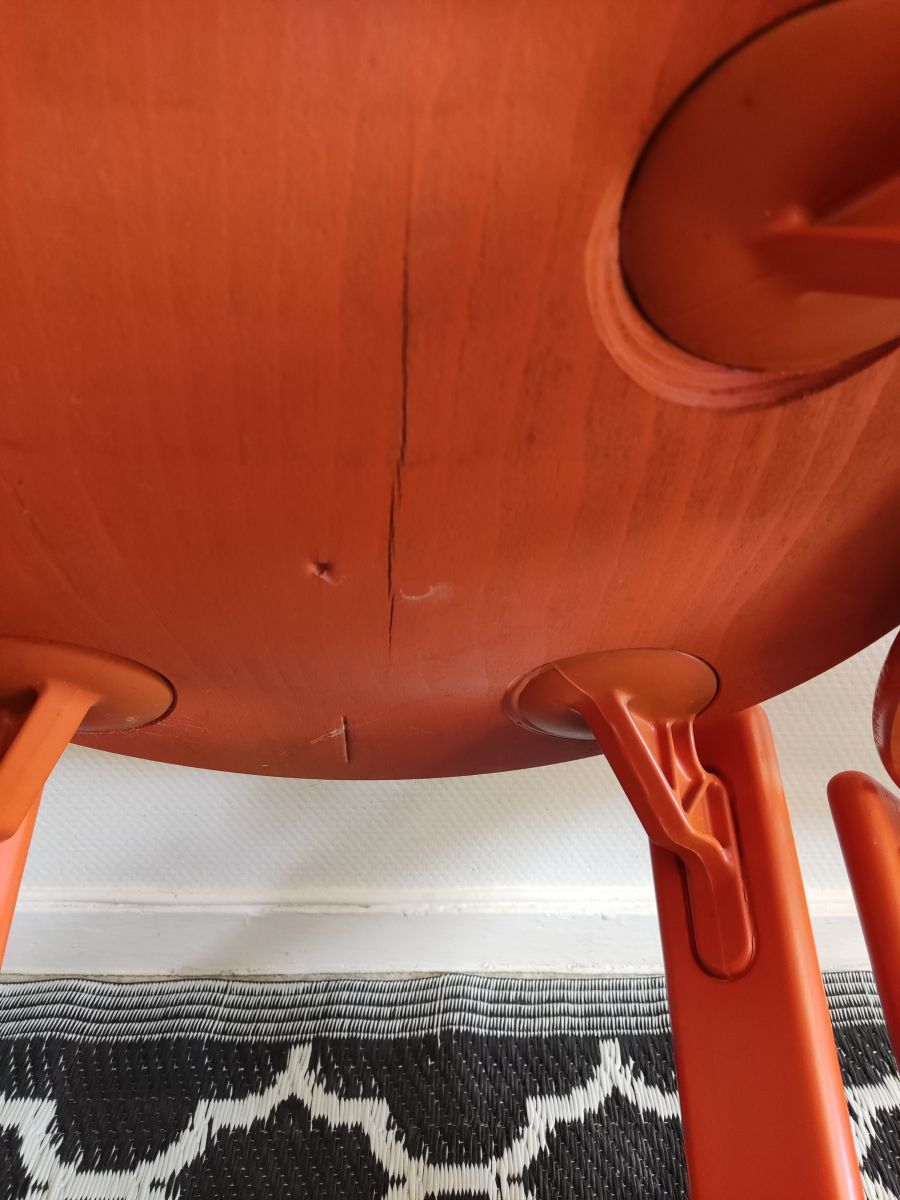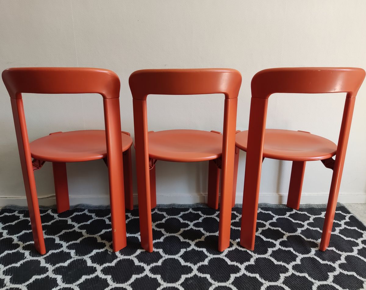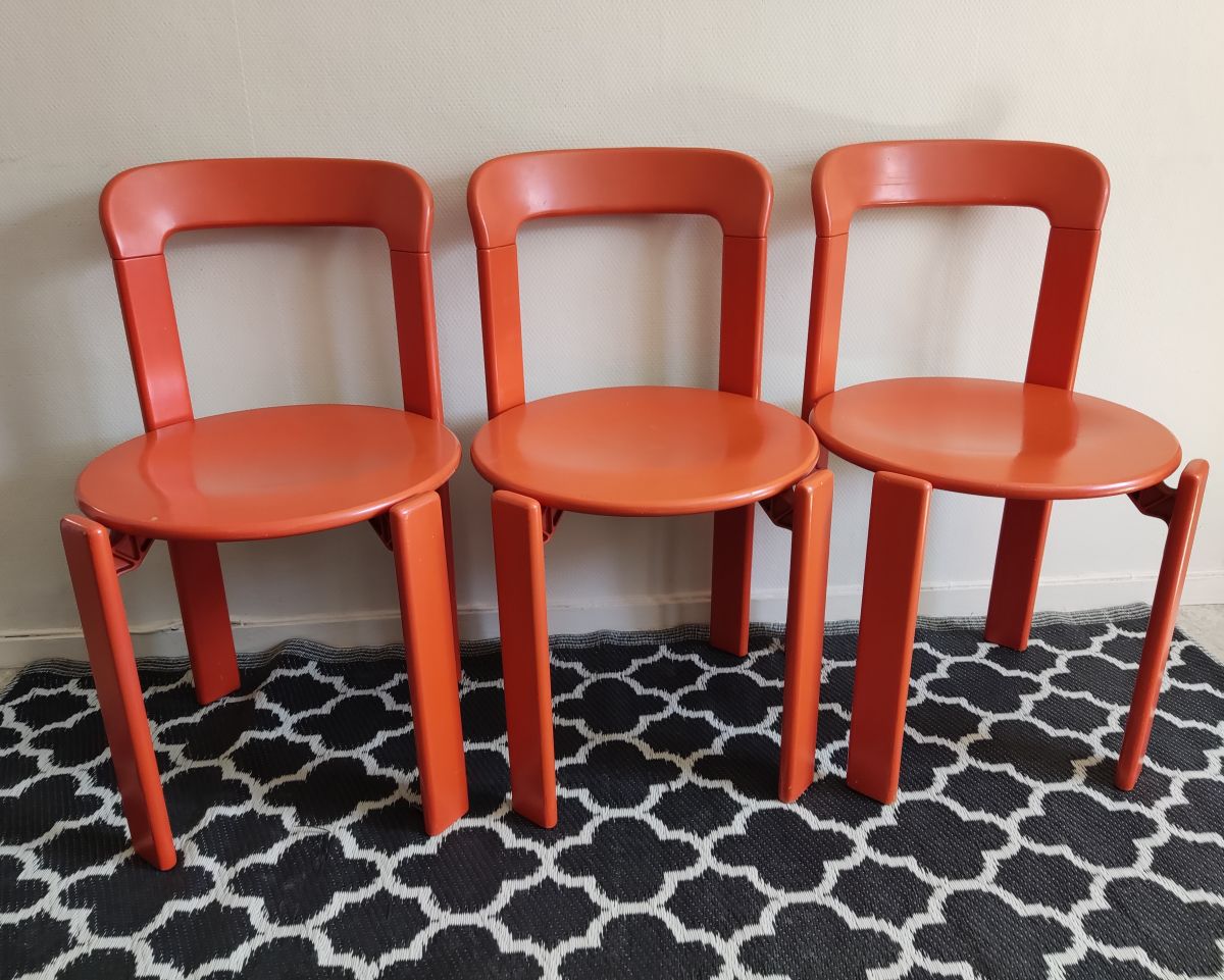 chaises orange en bois de Bruno Rey