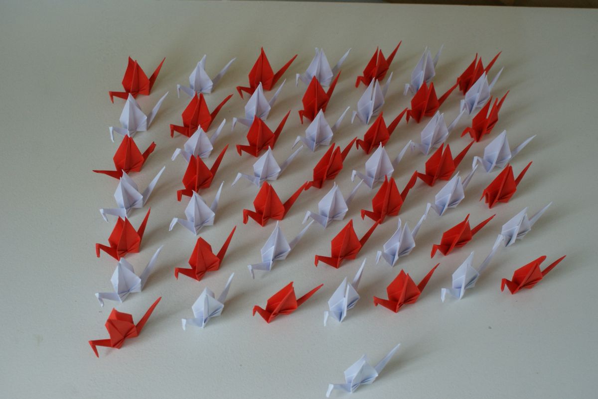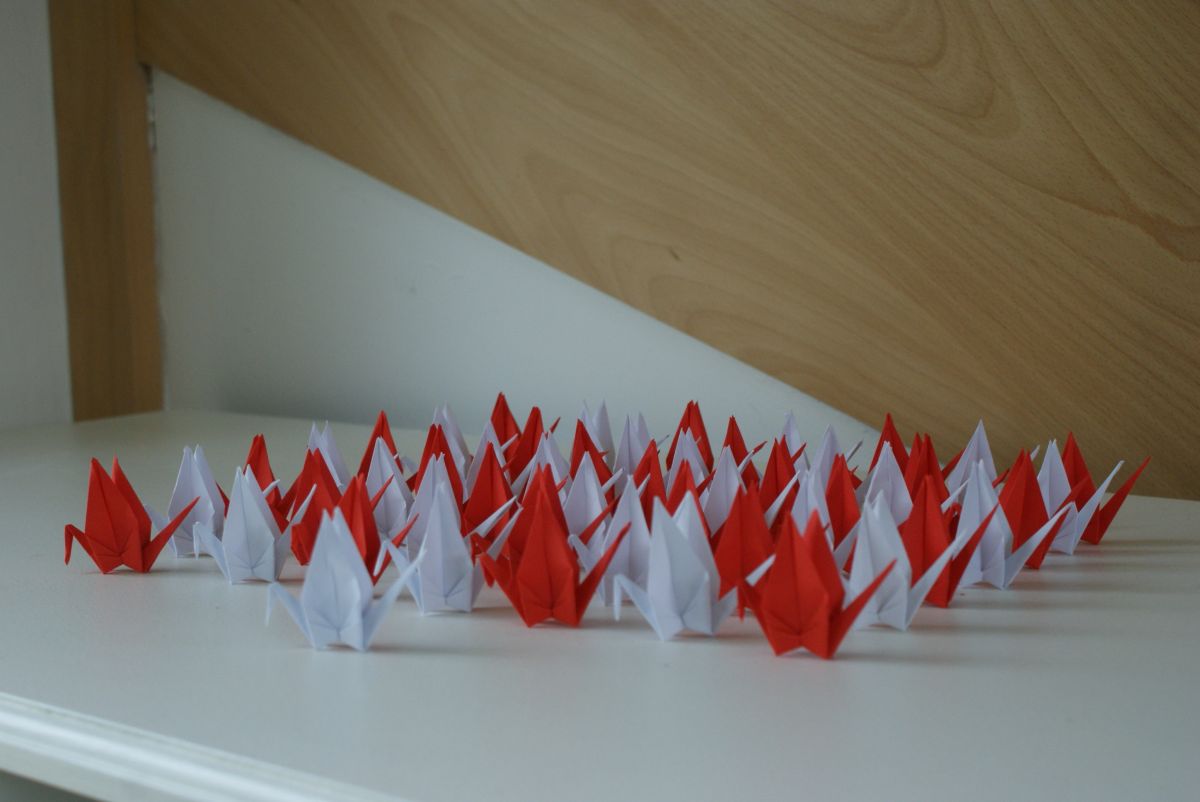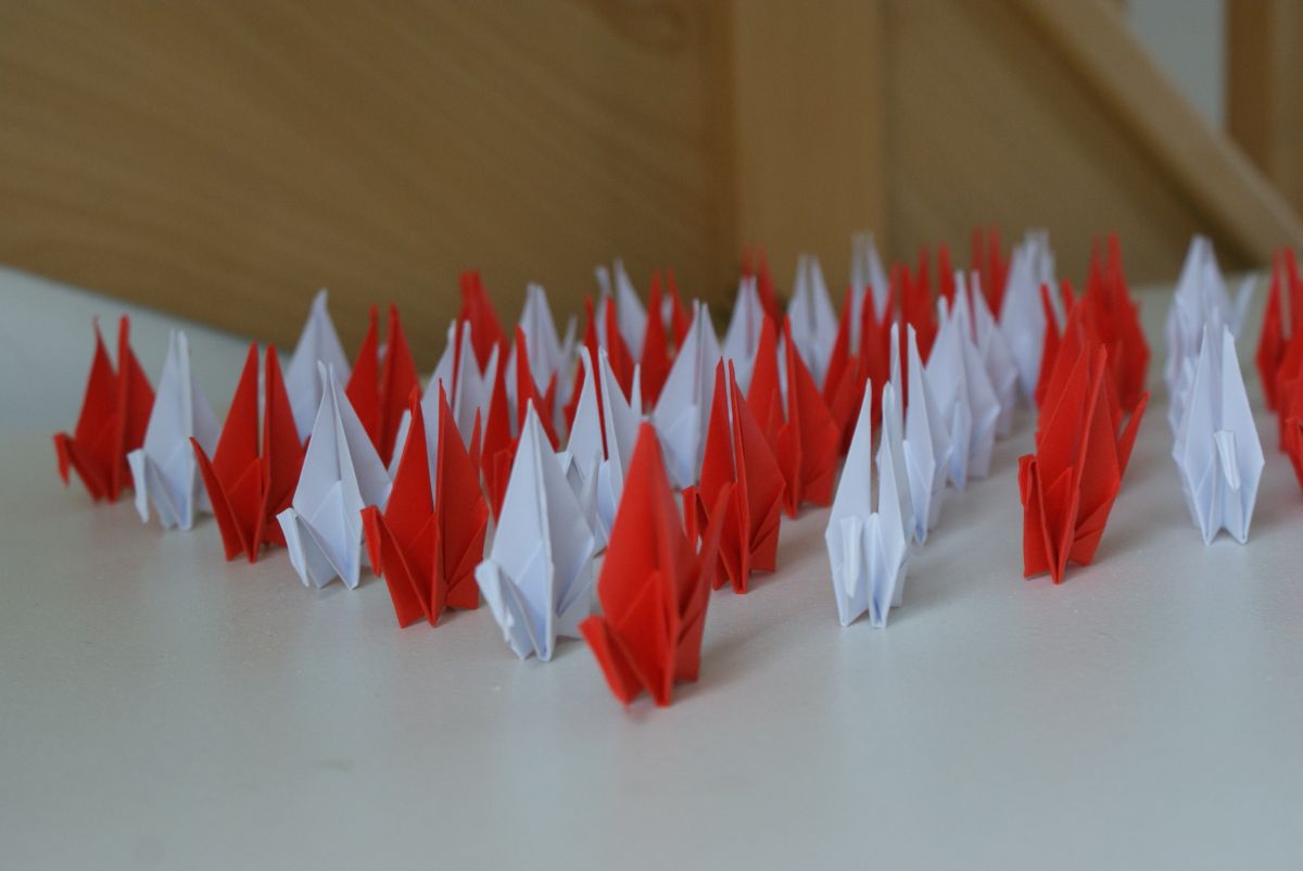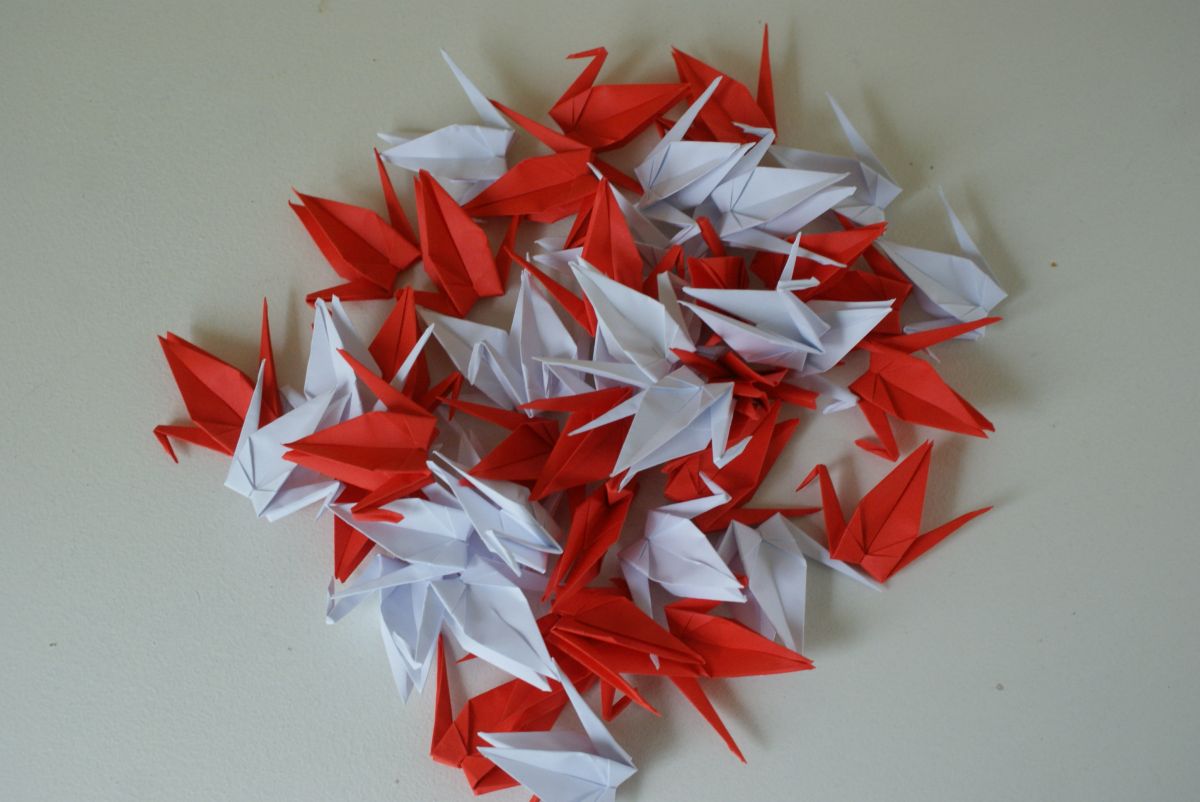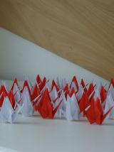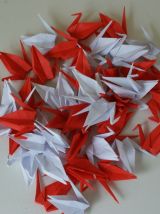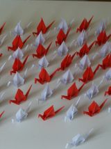 50 grues origami blanc et rouge mariage, fête, baptême, déco