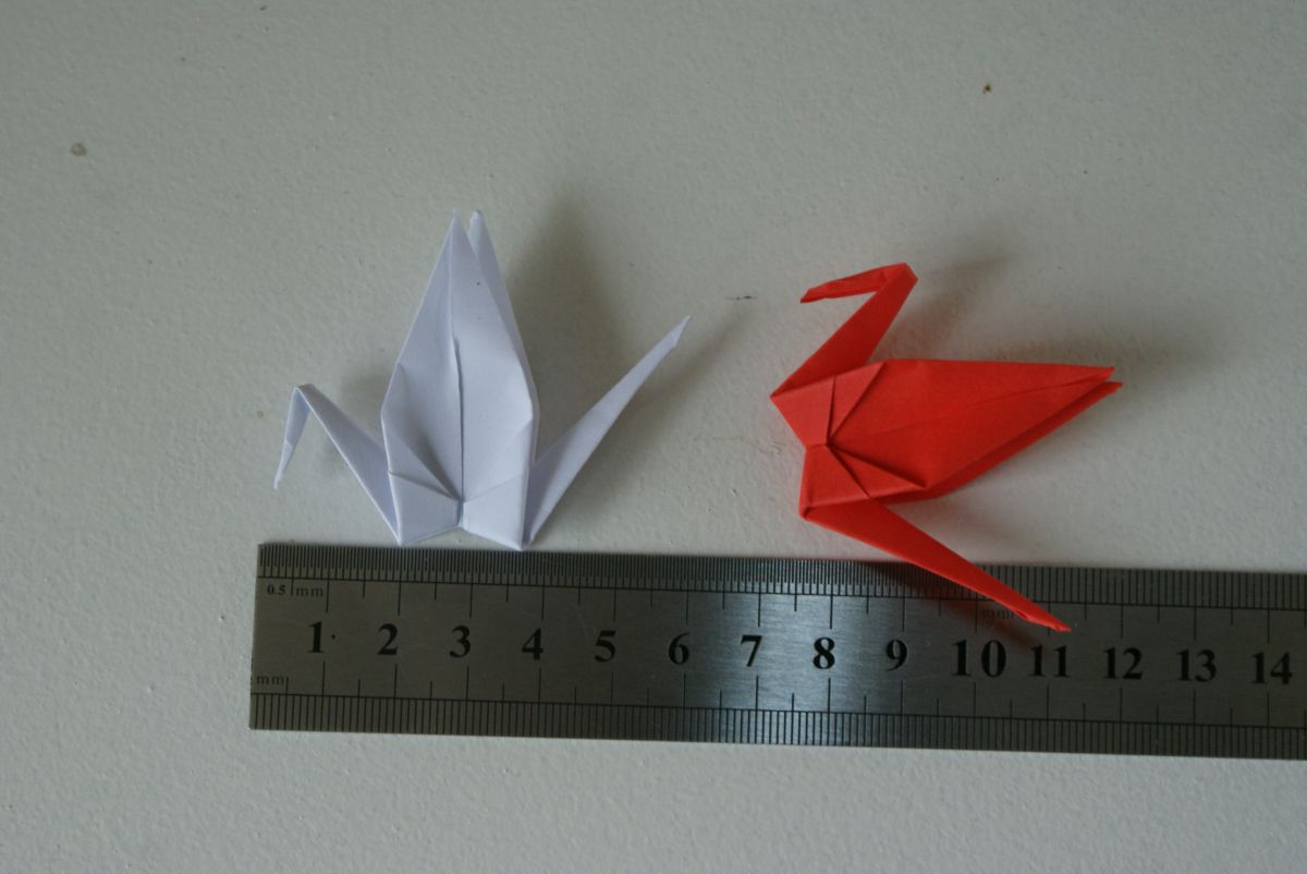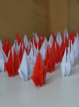 Elles sont réalisées en origami dans du papier de couleurs rouge et blanc et sont envoyées avec les ailes non déployées mais vous pourrez, si vous le souhaitez, les déployer