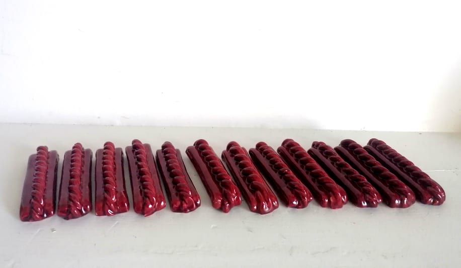 12 Porte-couteaux barbotine 1960 style Vallauris