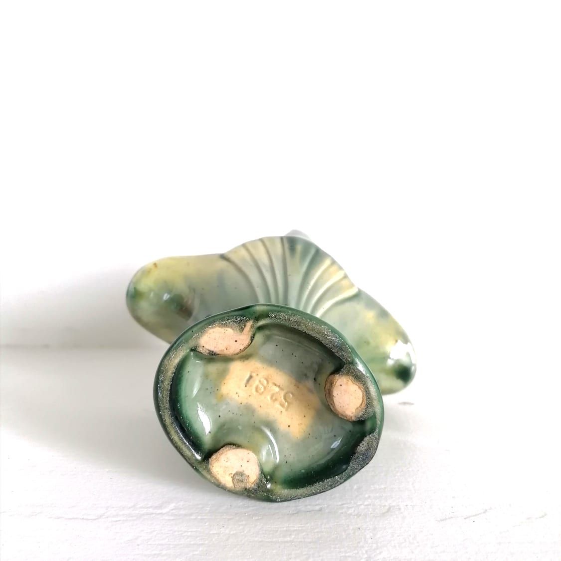 Petit vase panier, style art nouveau en céramique émaillée verte. Très jolie ligne.