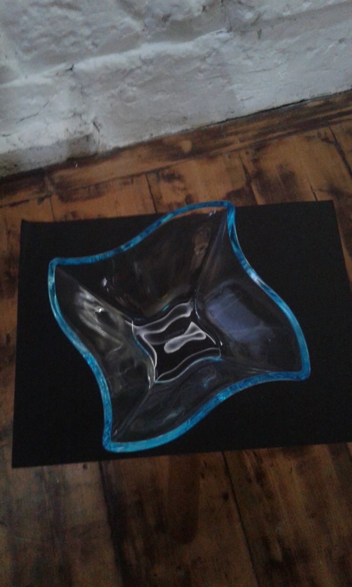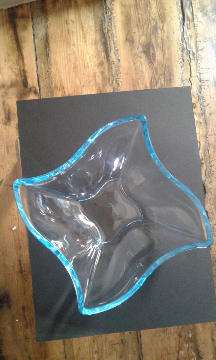 Coupe en verre transparent et bleuté cristalline de la manufacture Villeroy &Boch petite trace d usage au fond de la coupe .
