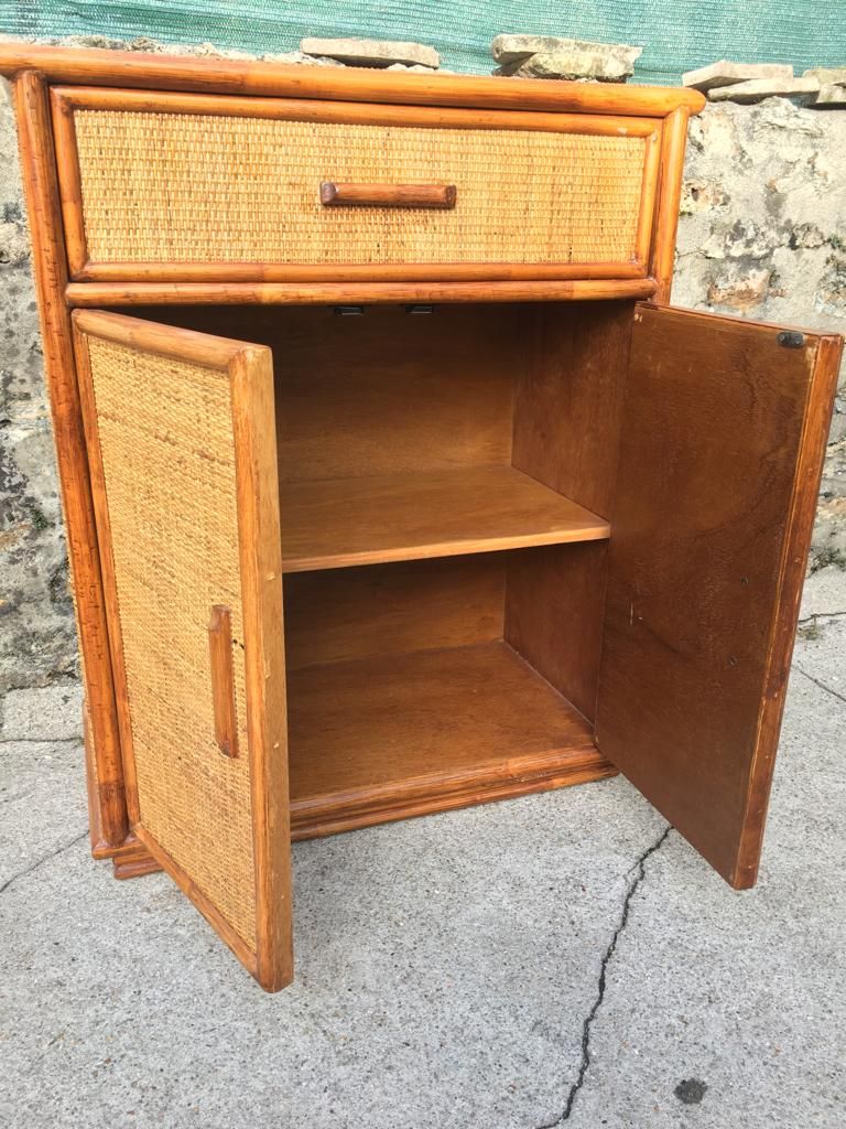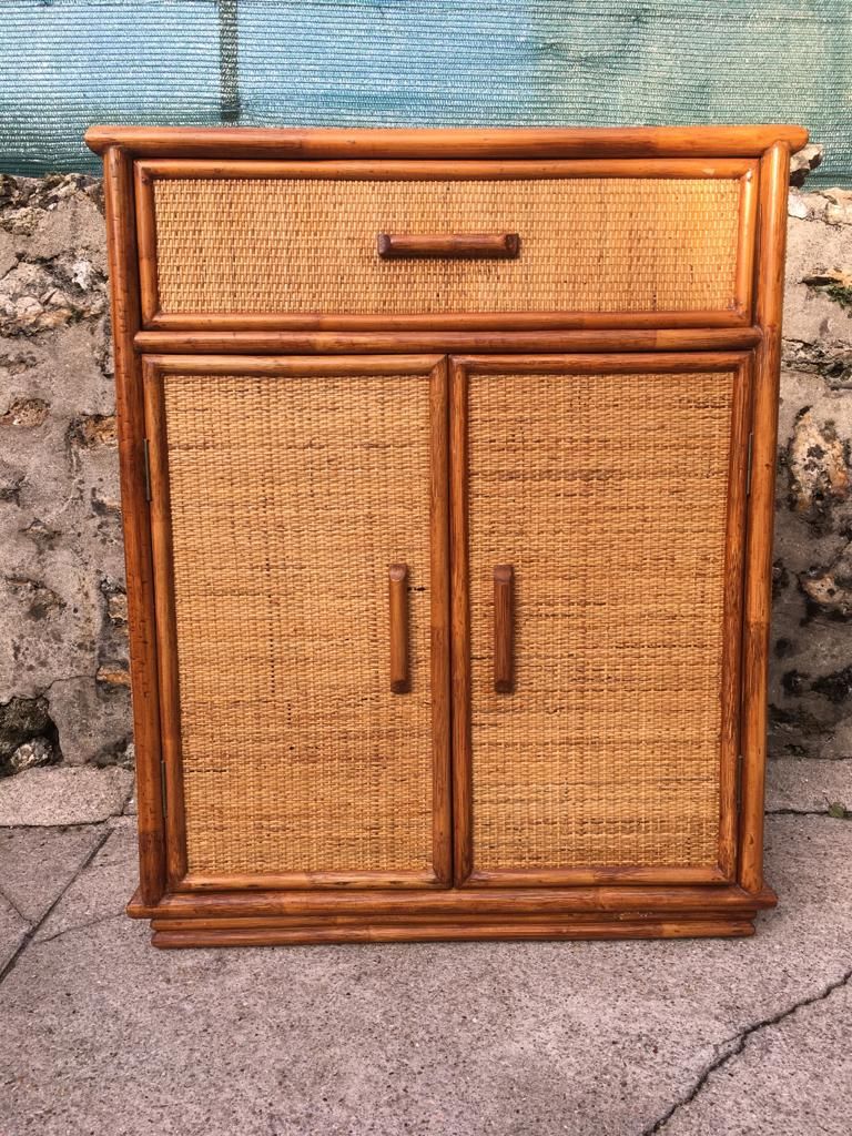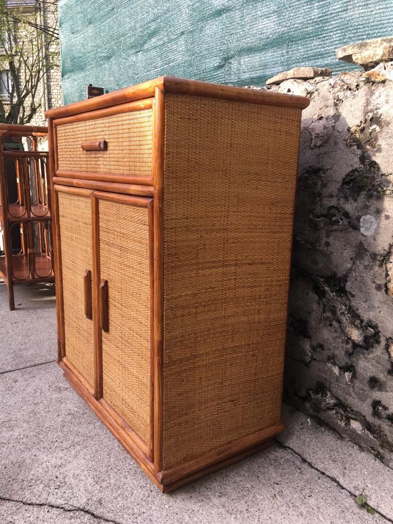 Très beau meuble en rotin tressé et en superbe état des années 80.
