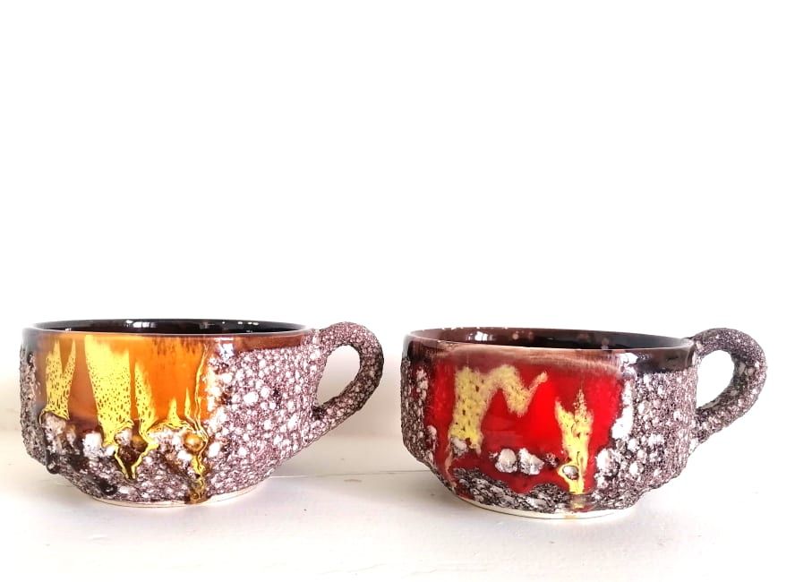 Tasses Vallauris céramique fat lava 1960