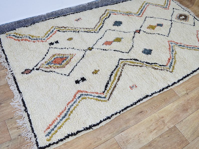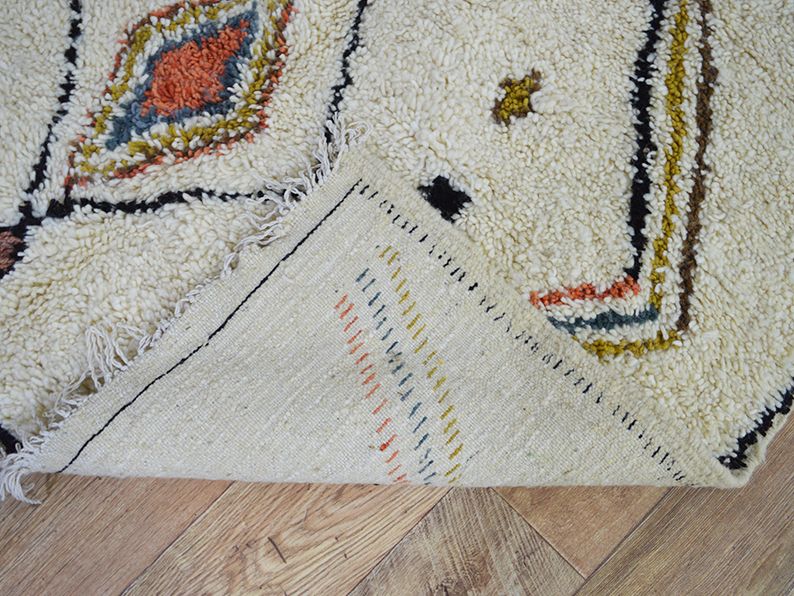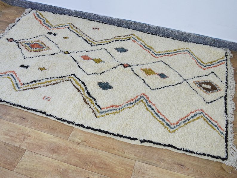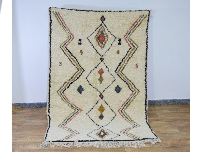 Tapis traditionnel marocain en laine tissée à la main qui durera des années. Imprégné d'art, d'histoire, de douceur et d'élégance. S'adaptera à tous les styles de décoration, il apportera une touche ethnique et chaleureuse à votre intérieur. Les meilleures techniques de tissage sont utilisées pour nos tapis et sont fabriquées à 100 % en laine. Nous collaborons directement avec les artisans car pour nous il est essentiel d'en savoir plus sur leur savoir-faire, d'apprendre le symbolique de leurs créations puis de partager avec vous à travers bohowool. Chaque tapis bohowool est unique et représente la vie de la tisserande qui l'a confectionné, merci de nous indiquer si vous préférez une autre taille, combinaison de couleurs, motif. Ce tapis est expédié du maroc, la douane peut s'appliquer entre 12 et 28 euros livraison vers: maroc en 3 à 5 jours.