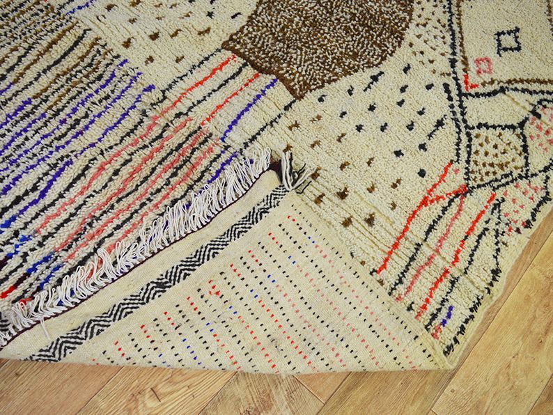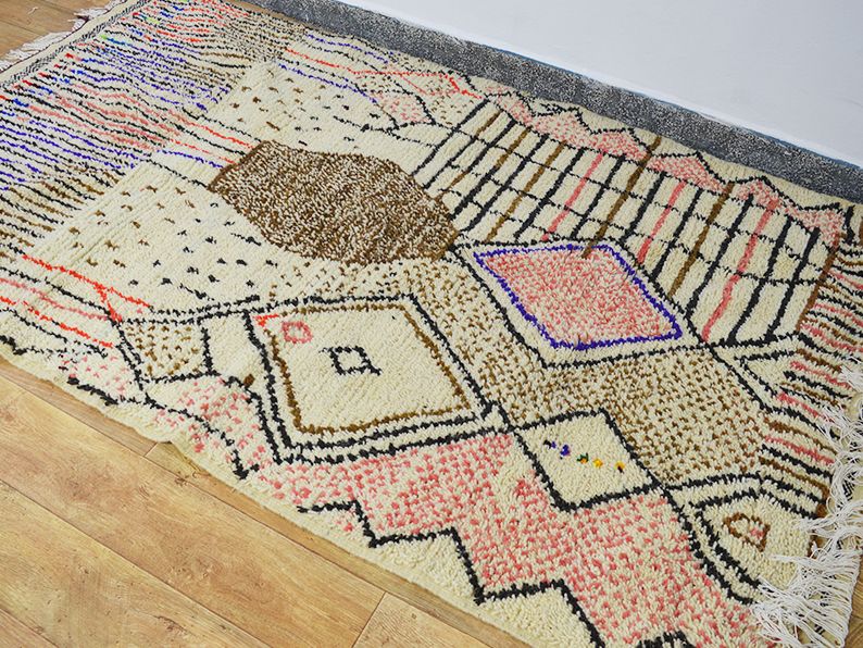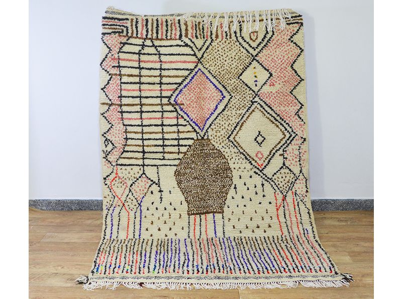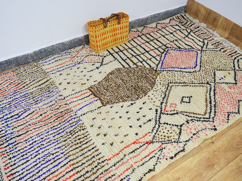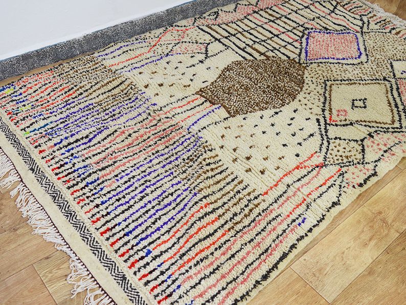 Tapis traditionnel marocain en laine tissée à la main qui durera des années. Imprégné d'art, d'histoire, de douceur et d'élégance. S'adaptera à tous les styles de décoration, il apportera une touche ethnique et chaleureuse à votre intérieur. Les meilleures techniques de tissage sont utilisées pour nos tapis et sont fabriquées à 100 % en laine. Nous collaborons directement avec les artisans car pour nous il est essentiel d'en savoir plus sur leur savoir-faire, d'apprendre le symbolique de leurs créations puis de partager avec vous à travers bohowool. Chaque tapis bohowool est unique et représente la vie de la tisserande qui l'a confectionné, merci de nous indiquer si vous préférez une autre taille, combinaison de couleurs, motif. Ce tapis est expédié du maroc, la douane peut s'appliquer entre 12 et 28 euros livraison vers: maroc en 3 à 5 jours.