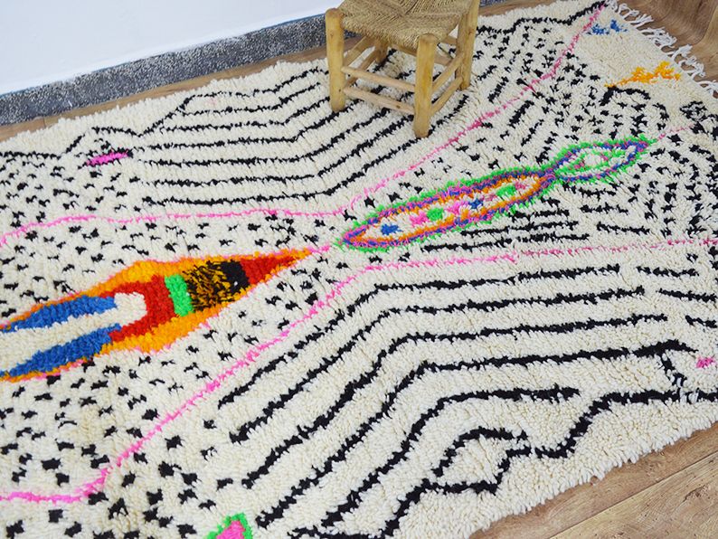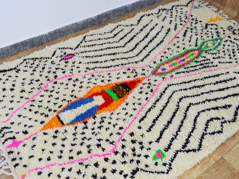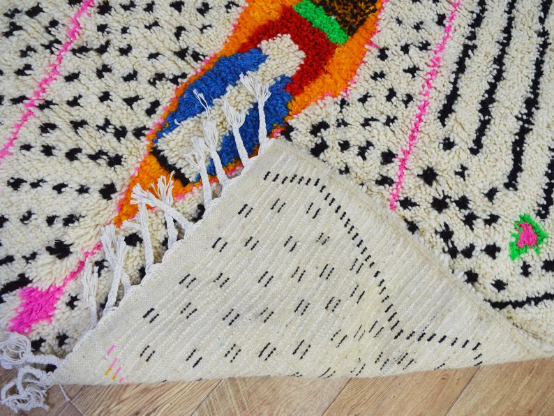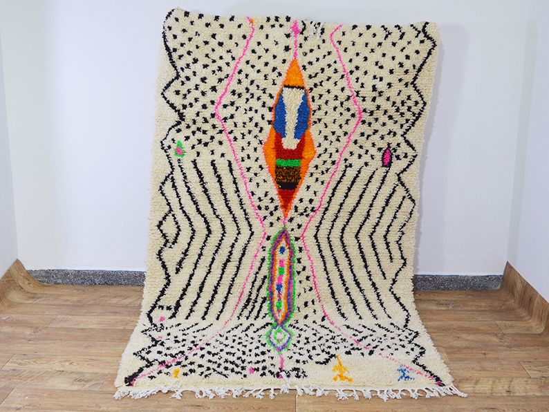 Tapis traditionnel marocain en laine tissée à la main qui durera des années. Imprégné d'art, d'histoire, de douceur et d'élégance. S'adaptera à tous les styles de décoration, il apportera une touche ethnique et chaleureuse à votre intérieur. Les meilleures techniques de tissage sont utilisées pour nos tapis et sont fabriquées à 100 % en laine. Nous collaborons directement avec les artisans car pour nous il est essentiel d'en savoir plus sur leur savoir-faire, d'apprendre le symbolique de leurs créations puis de partager avec vous à travers bohowool. Chaque tapis bohowool est unique et représente la vie de la tisserande qui l'a confectionné, merci de nous indiquer si vous préférez une autre taille, combinaison de couleurs, motif. Ce tapis est expédié du maroc, la douane peut s'appliquer entre 12 et 28 euros livraison vers: maroc en 3 à 5 jours.