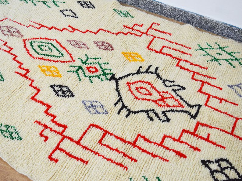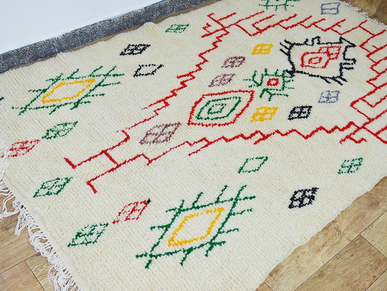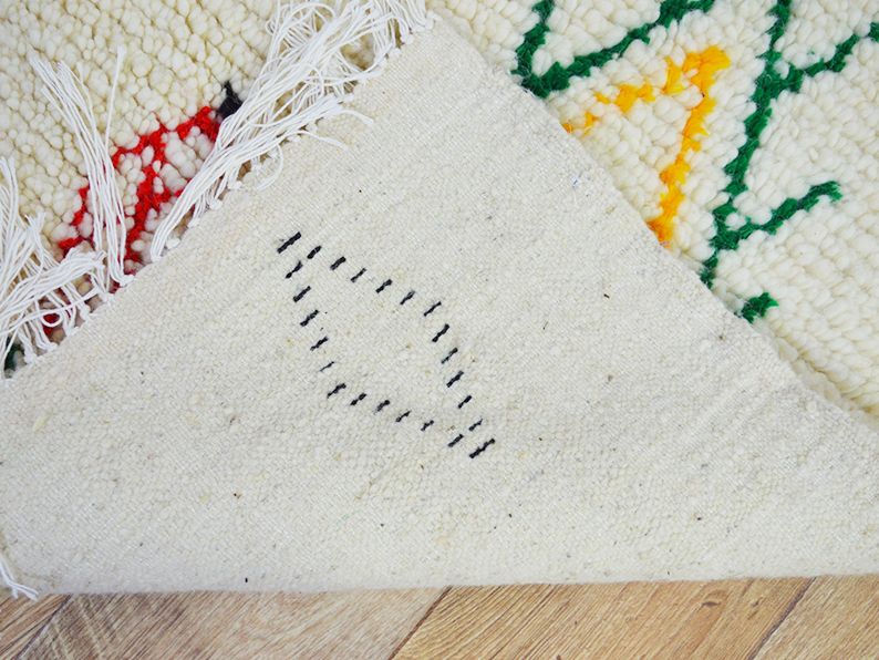 Tapis traditionnel marocain en laine tissée à la main qui durera des années. Imprégné d'art, d'histoire, de douceur et d'élégance. S'adaptera à tous les styles de décoration, il apportera une touche ethnique et chaleureuse à votre intérieur. Les meilleures techniques de tissage sont utilisées pour nos tapis et sont fabriquées à 100 % en laine. Nous collaborons directement avec les artisans car pour nous il est essentiel d'en savoir plus sur leur savoir-faire, d'apprendre le symbolique de leurs créations puis de partager avec vous à travers bohowool. Chaque tapis bohowool est unique et représente la vie de la tisserande qui l'a confectionné, merci de nous indiquer si vous préférez une autre taille, combinaison de couleurs, motif. Ce tapis est expédié du maroc, la douane peut s'appliquer entre 12 et 28 euros livraison vers: maroc en 3 à 5 jours.