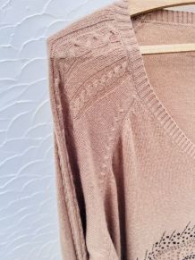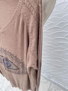 Pull marron à col blouse brodé blanche crèmefemme taille 36