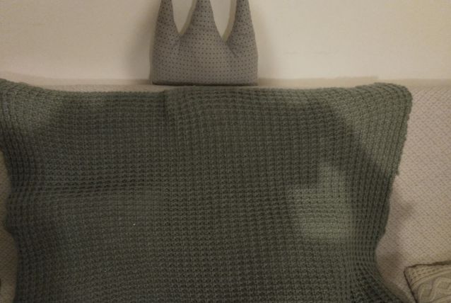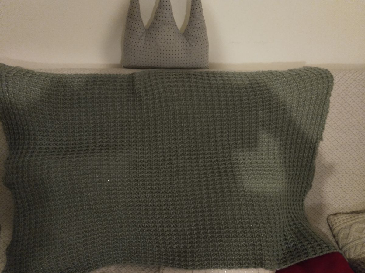 Jolie maille crochet couleur vert amande pastel et paillettes dorés