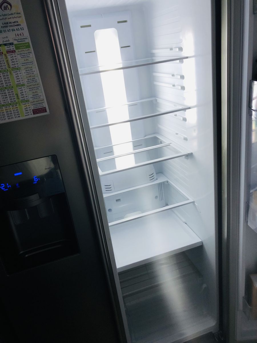 bonjour URGENT je vends un réfrigérateur américain Samsung,couleur silver, acheté y’a 5 ans ,ayant refait ma cuisine malheureusement je n’ai plus de place, sinon je l’aurais garder ,il y a quelques accessoires un peu cassé,pas très gênant que vous pouvez racheter sur des sites,mais il fonctionne parfaitement il est très propre ,distributeur d’eau ,prix initial 1100€00 ,actuellement prix ont augmenté voir plus cher dans plusieurs magasins et sites internet entre 1500€00 et 2000€00 ,bonne affaire à ce prix la renseigner vous je le revends 400€00 , si intéressé me contacter URGENT