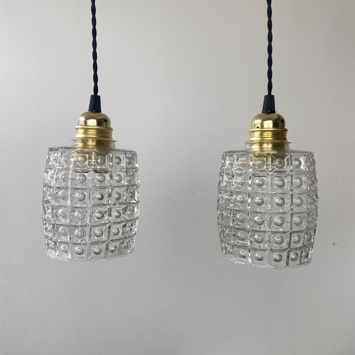 LOT 2 ANCIENNES SUSPENSIONS EN VERRE MOULÉ VINTAGE