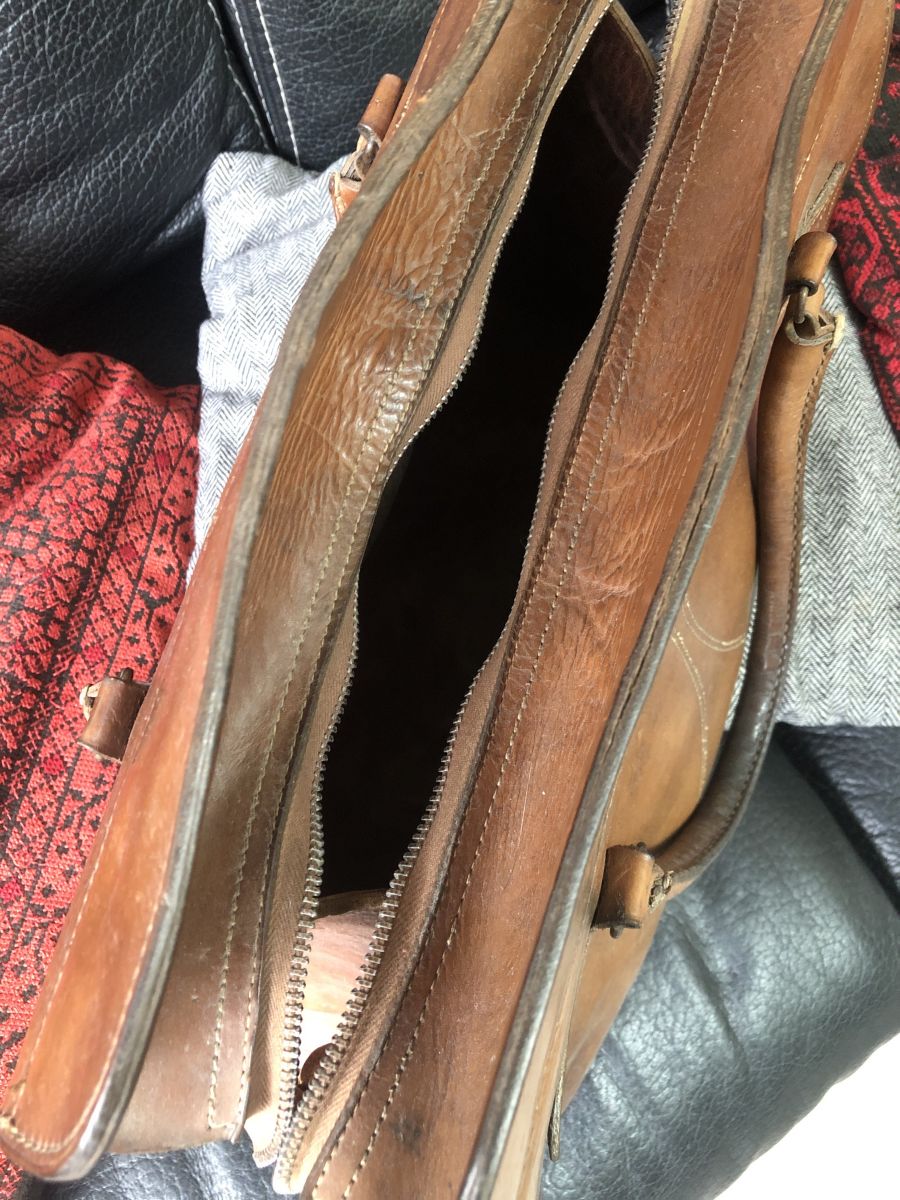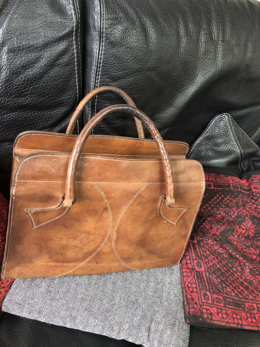 Vends sac tout cuir de confection artisanale soignée très solide ; très stylé ; cuir camel et porté main et / ou bras et épaules ( sauf par dessus un gros manteau) il a quelques tâches d’usage mais il a son age ! Il a été désinfecté et le cuir a été traité ( nettoyant végétal et crème de soin pour le cuir )