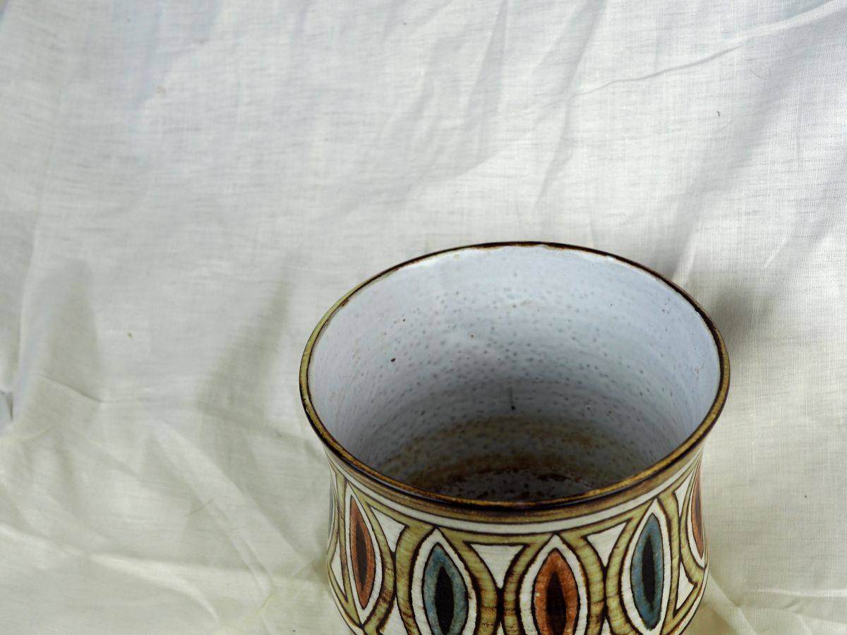 Cette pièce au décor représentant parfaitement l'esprit Vallauris s’inscrira parfaitement dans une collection de faïences mais pourra aussi servir de vase de décoration ou de cache-pot dans des intérieurs bord de mer, méditerranéen, bohème, loft ou d'inspiration africaine.