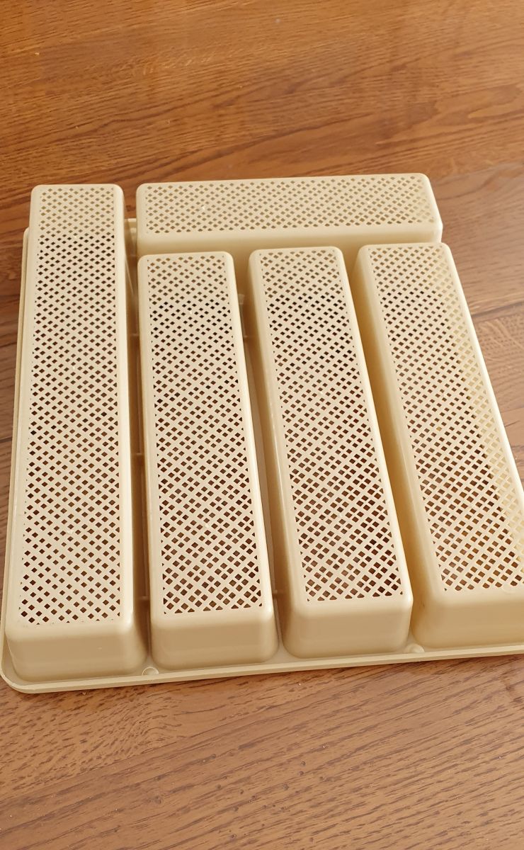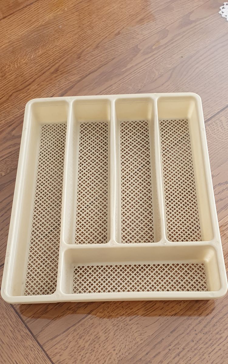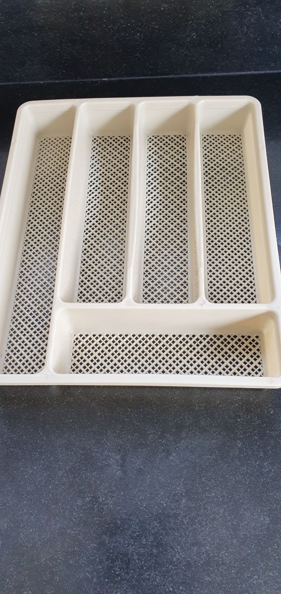 3 compartiments pour couteaux, fourchettes et cuillères à soupe, 1 compartiments pour les cuillères à dessert, plus un compartiment plus long pour les ustensiles.