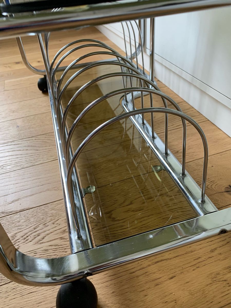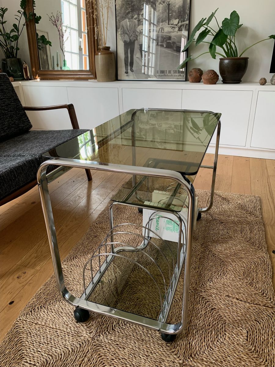Il est composé de trois plateaux et de rangements pour les vinyles 33 et 45 tours, ou pourquoi pas des livres.