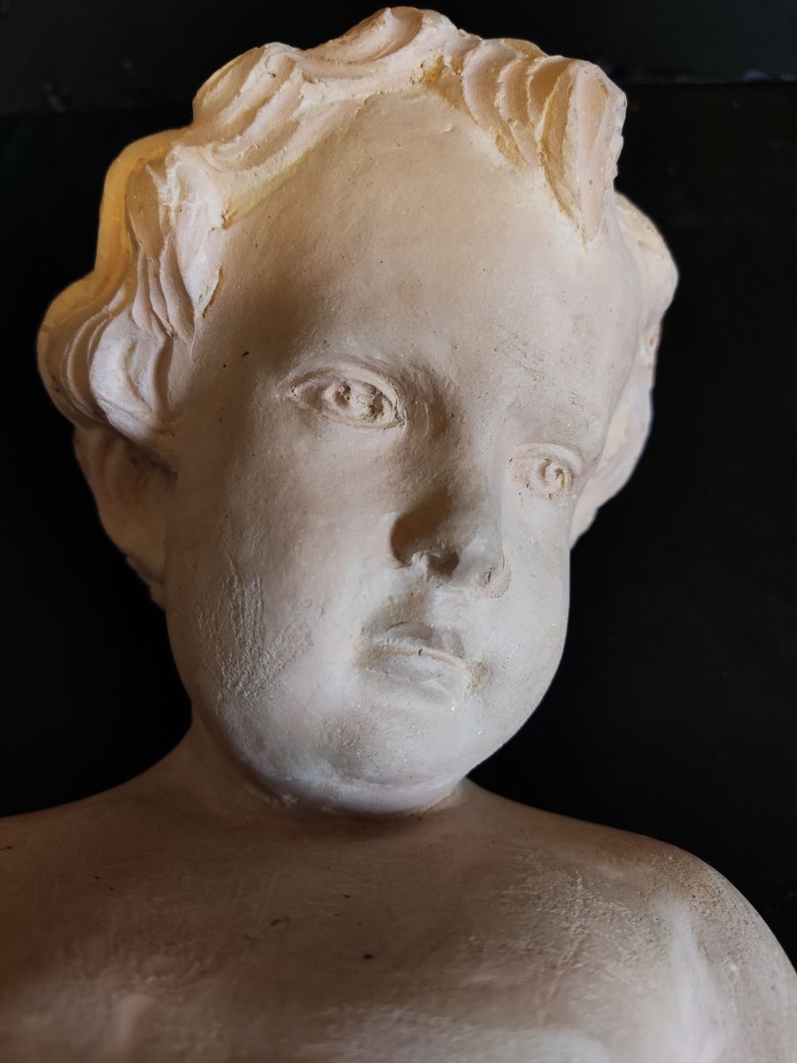 buste enfant (putti) en terre cuite d'inspiration italienne