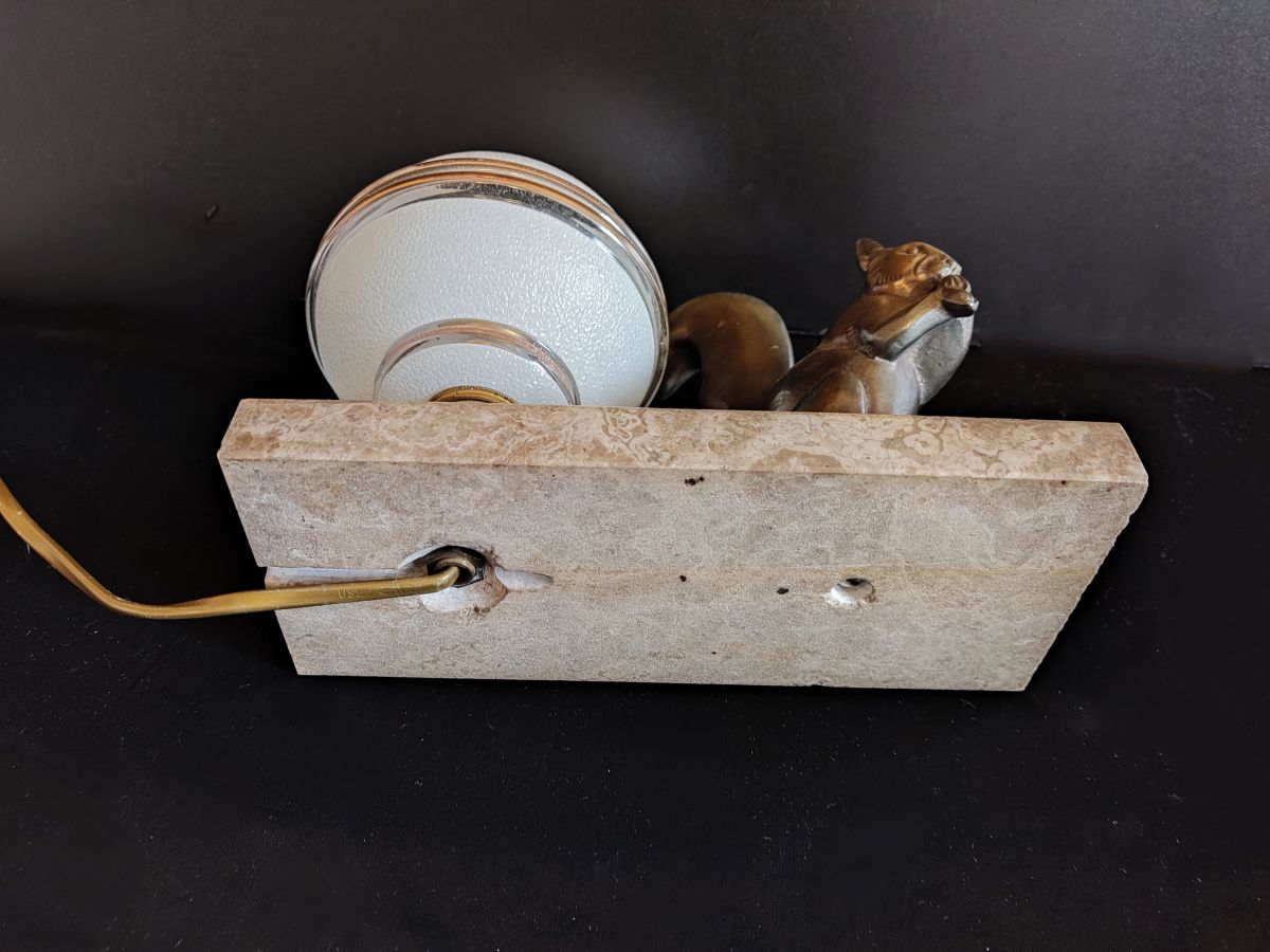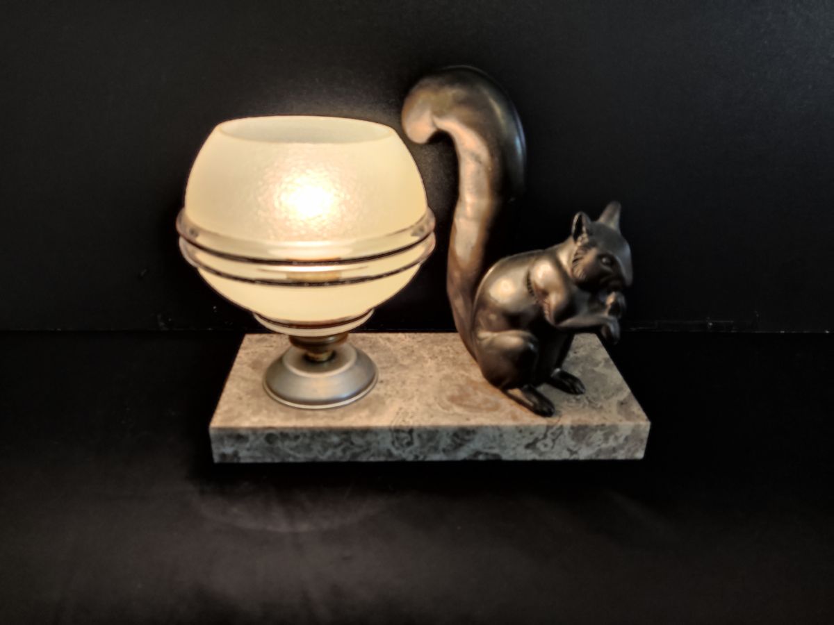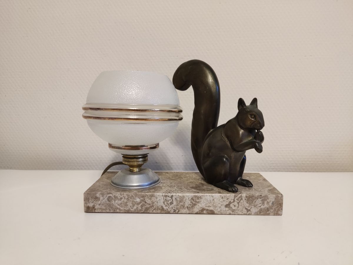 lampe veilleuse écureuil art déco avec globe d'origine signée M. Leducq