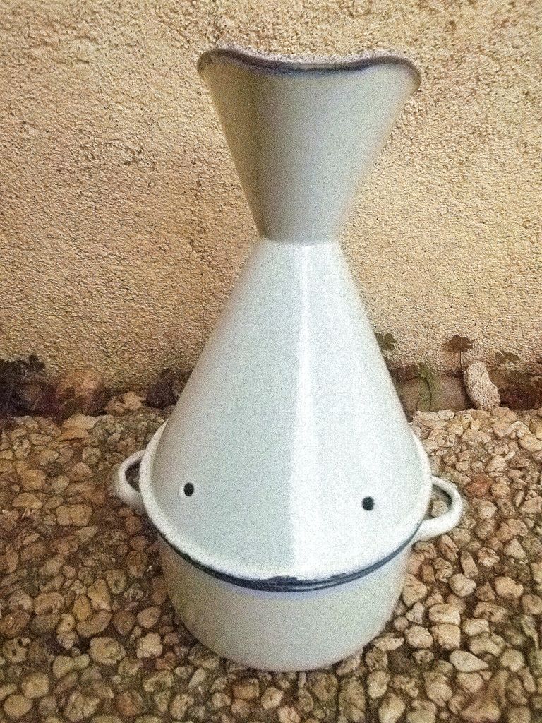 Inhalateur acier émaillé couleur blanc et bleu , vintage