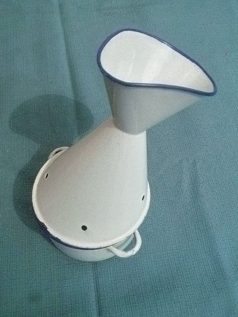 Inhalateur ancien émaillé VINTAGE blanc et bleu